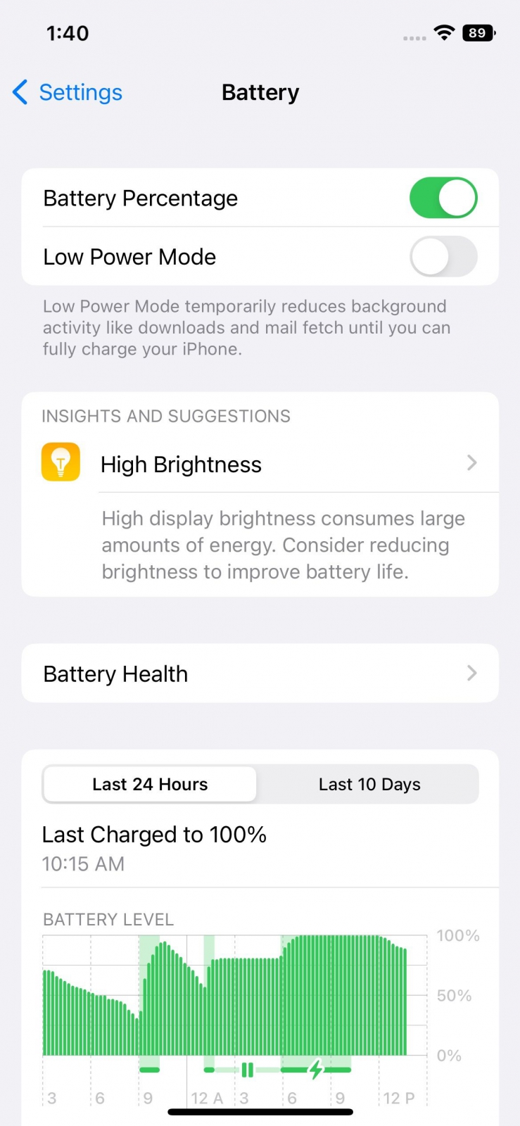ให้แตะที่ "ไอคอน Settings" แล้วแตะที่ "เมนู Battery"