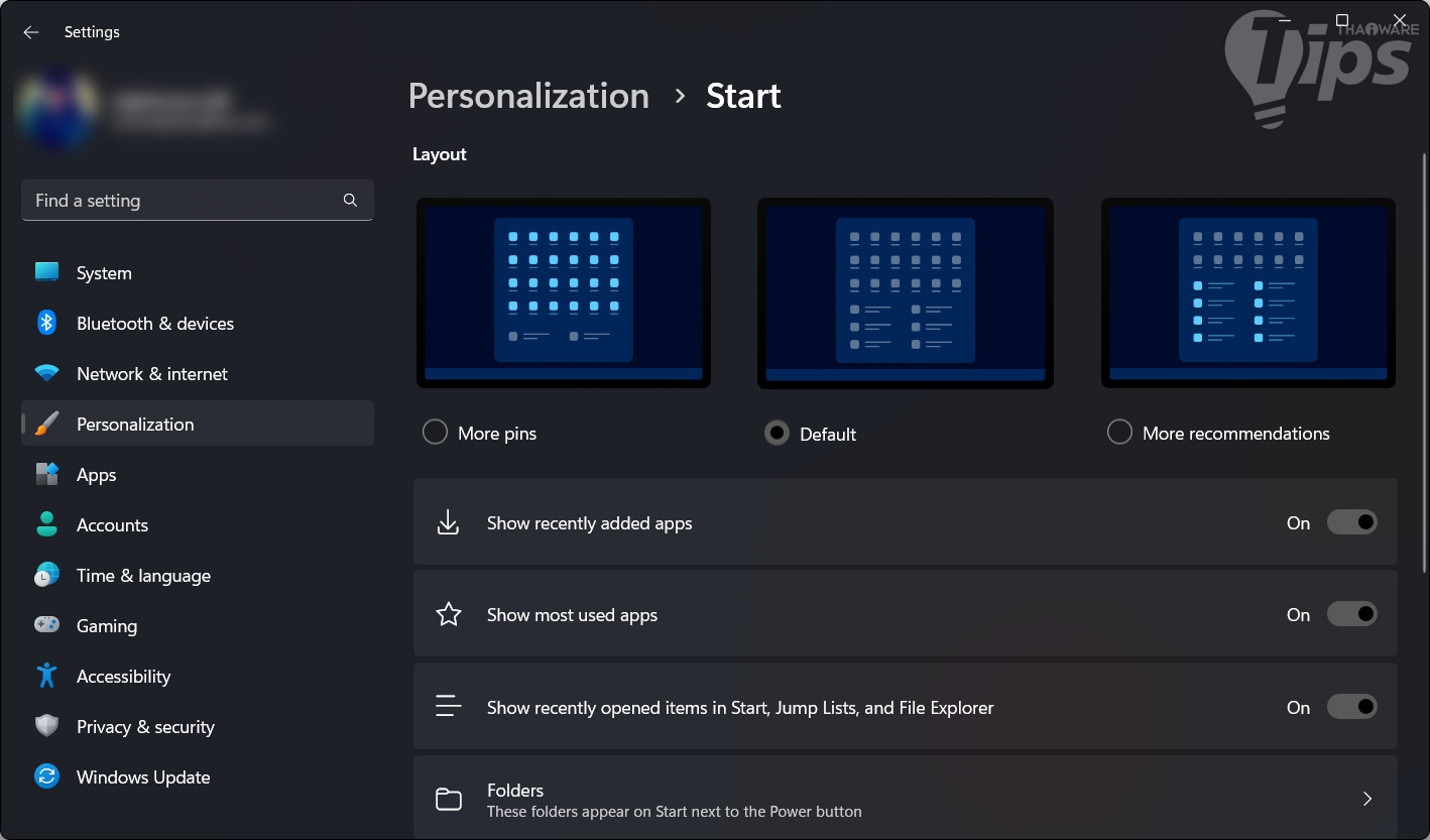 "เมนู Start" เปรียบเสมือนบ้านที่รวมทางลัดประเภทต่าง ๆ เอาไว้ นอกเหนือจากไอคอนไว้เปิดแอปพลิเคชันแล้ว เรายังสามารถเพิ่มทางลัดสำหรับใช้เข้า โฟลเดอร์ (Folder) ต่าง ๆ ของระบบปฏิบัติการ Windows หรือแม้แต่ "เมนู Settings" เข้ามาได้ด้วย แต่ลูกเล่นนี้ไม่ได้ถูกเปิดใช้งานเอาไว้เป็นค่าเริ่มต้น ผู้ใช้จะต้องตั้งค่าเปิดใช้งานด้วยตนเอง ด้วยขั้นตอนดังนี้
