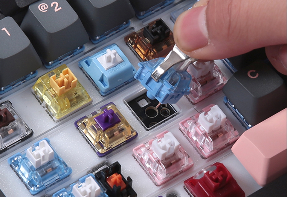 อย่างที่เราได้อธิบายไปแล้วในข้างต้นว่า Hot-Swappable Switch นั้นตัวสวิตช์สามารถถอดเปลี่ยนได้อย่างง่ายดาย ต่างจากคีย์บอร์ดแบบ Membrane ที่ผู้ใช้ไม่สามารถเปลี่ยนเสียง และสัมผัสในการพิมพ์ได้ หรือถ้าเป็นแมคคานิคอลคีย์บอร์ดแบบ Soldered Switch นั้น คุณต้องอาศัยทักษะในการงัดแงะ และบัดกรีในการเปลี่ยนสวิตช์