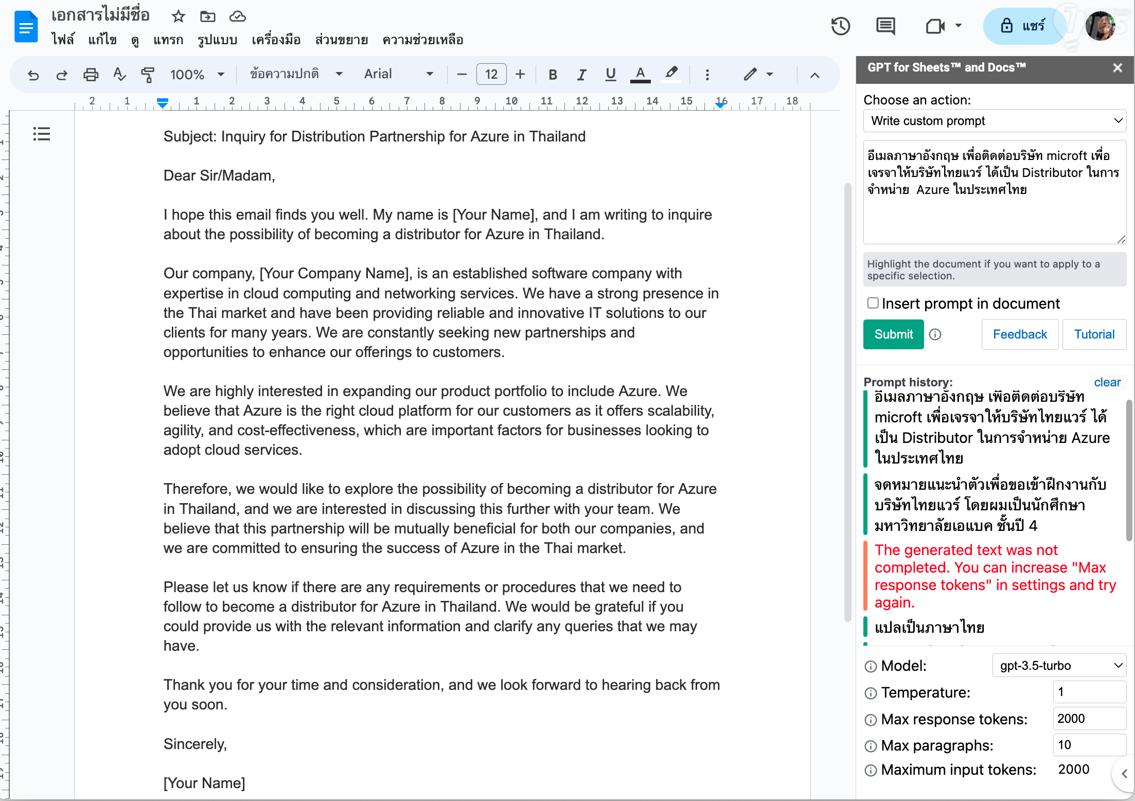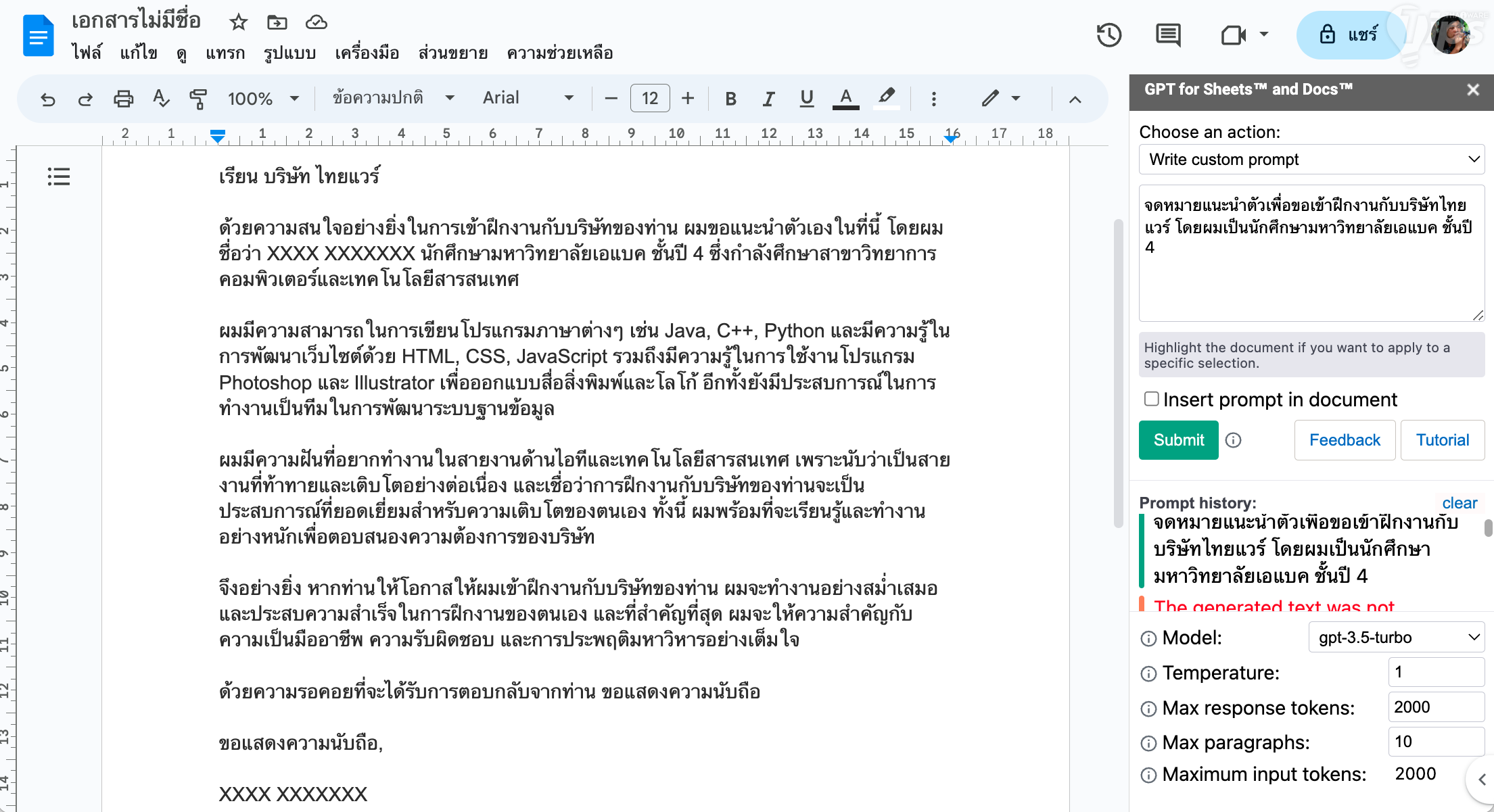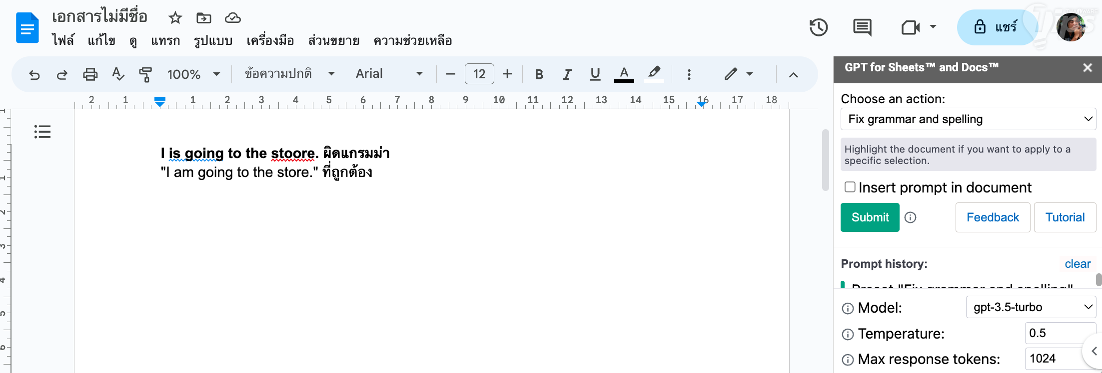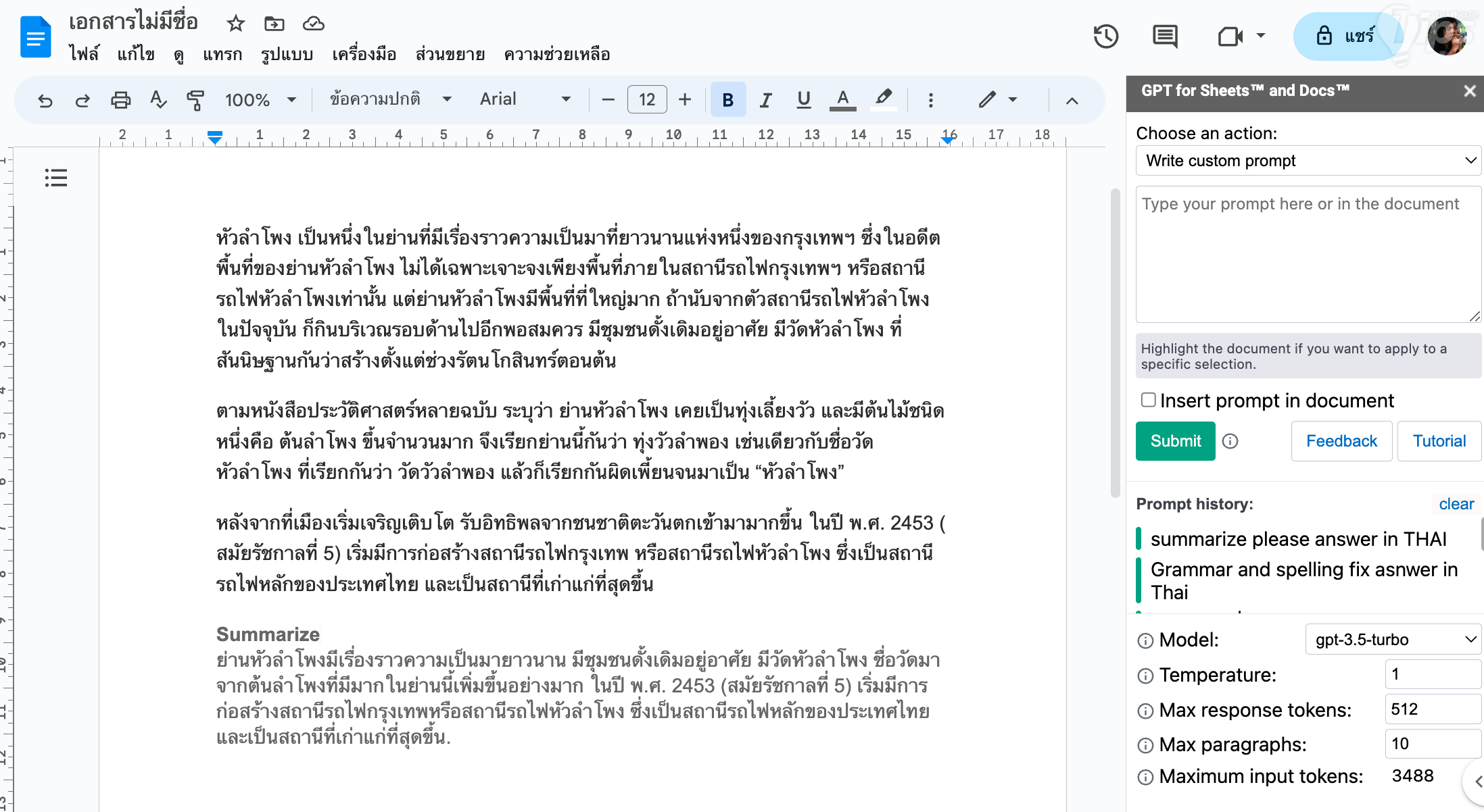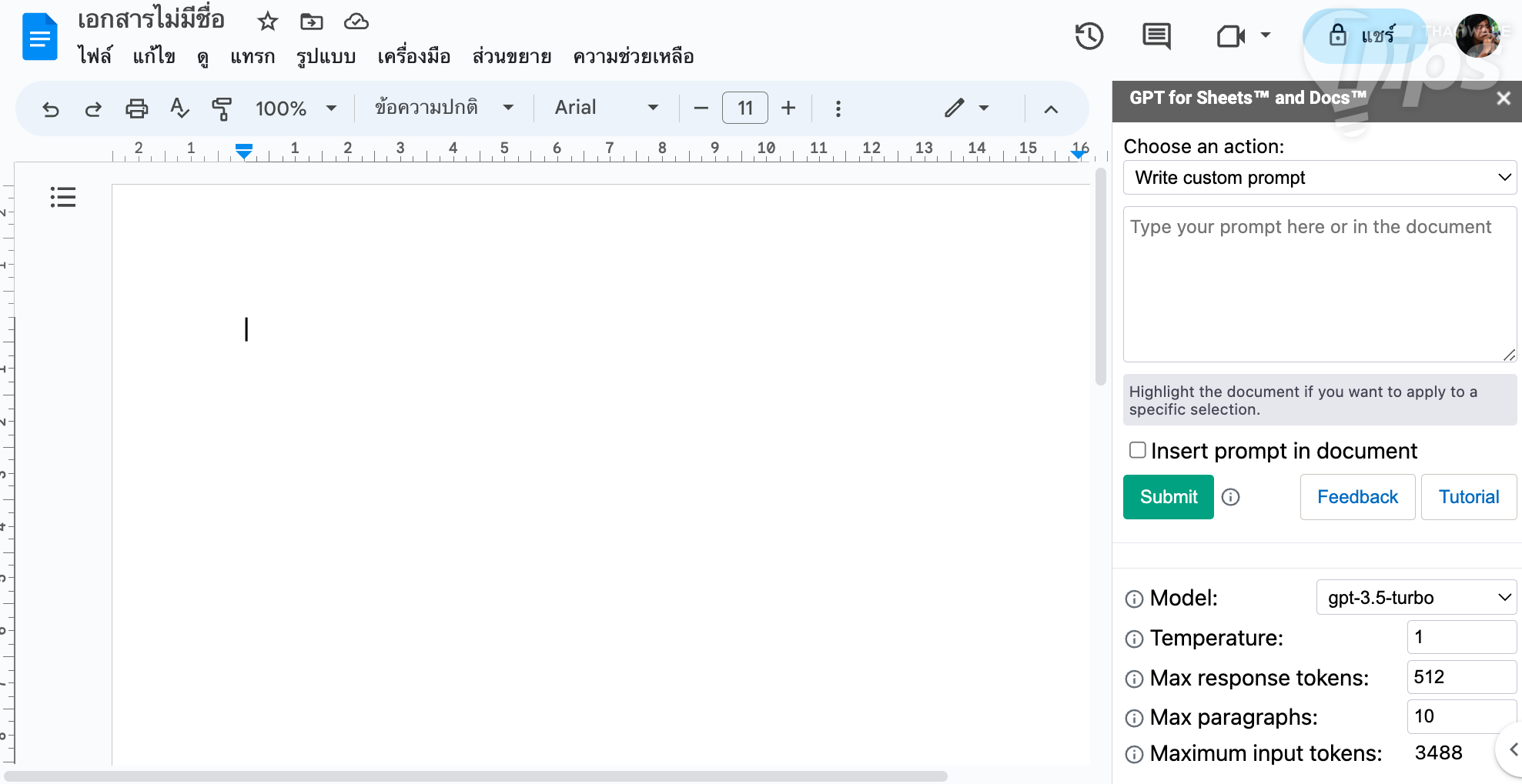 เท่านี้ เราก็สามารถใช้งาน ChatGPT บน Google Docs ได้แล้ว