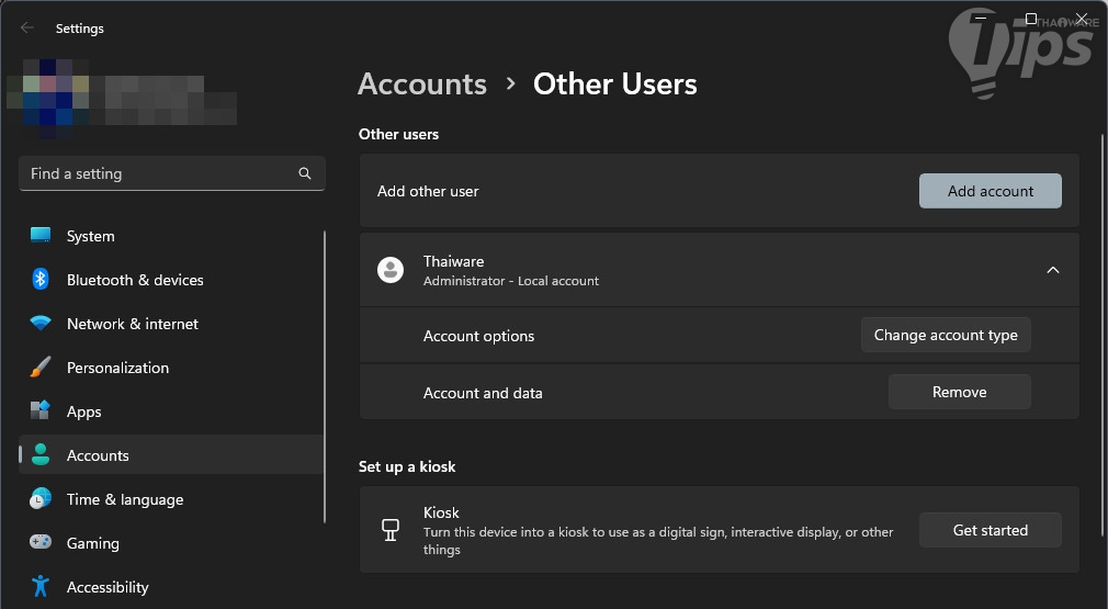 บัญชี Local Account ที่ทำงานแบบออฟไลน์ เนื่องจากคุณไม่ต้องอาศัยอินเทอร์เน็ตในการตั้งค่ามัน ดังนั้น หากคุณมีอุปกรณ์หลายตัว คุณก็จะต้องสร้างบัญชี Local Account ใหม่ให้กับทุกอุปกรณ์ โดยที่เราสามารถกำหนดค่าได้ว่าจะให้มันเป็นบัญชีระดับผู้ดูแล (Administrator Level) หรือบัญชีแบบมาตรฐานเพื่อจำกัดการใช้งาน