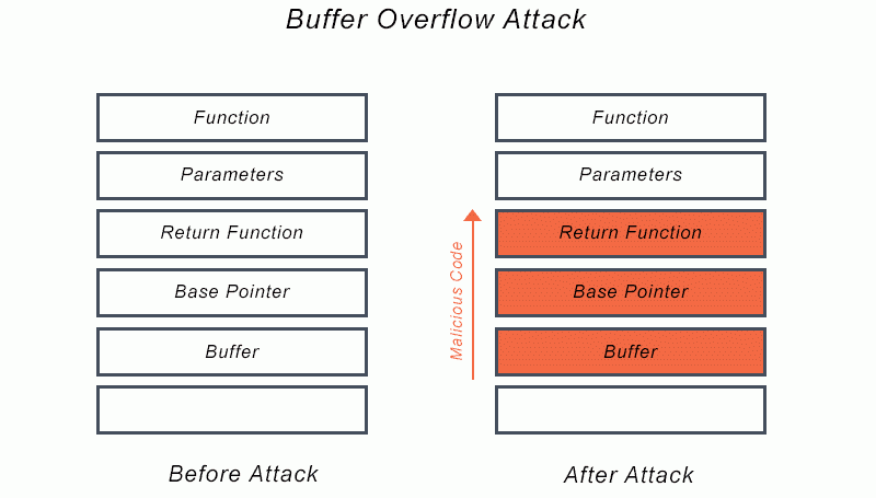 ถ้าหากแฮกเกอร์รู้รูปแบบหน่วยความจำ (Memory Layout) ของซอฟต์แวร์ ก็ไม่ใช่เรื่องยากที่แฮกเกอร์จะสามารถป้อนข้อมูลที่ตัว Buffer ไม่สามารถจัดเก็บได้ และเขียนข้อมูลโค้ดอันตรายทับลงไป เช่น สั่งให้ซอฟต์แวร์อ่าน Payload (โค้ดอันตรายที่ถูกแทรกเข้าไปในระบบเพื่อทำการโจมตี หรืออะไรก็ตามที่ตามปกติระบบไม่อนุญาตให้ทำได้)