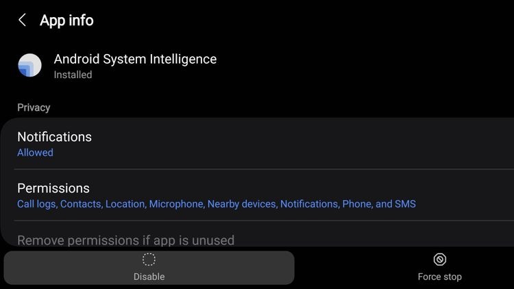 ทั้งนี้ เนื่องจาก Android System Intelligence (ASI) เป็นแอปพลิเคชันหลักของระบบ Core System Application) ดังนั้นผู้ใช้จึงไม่สามารถถอนการติดตั้งออกจากตัวอุปกรณ์ได้ ทำได้แค่เพียงปิดการทำงานของมันเท่านั้น แต่เราไม่แนะนำให้ปิดมันนะ โดยสามารถเข้าไปปิดได้ใน "แอป Settings → Apps → Android System Intelligence → Disable"