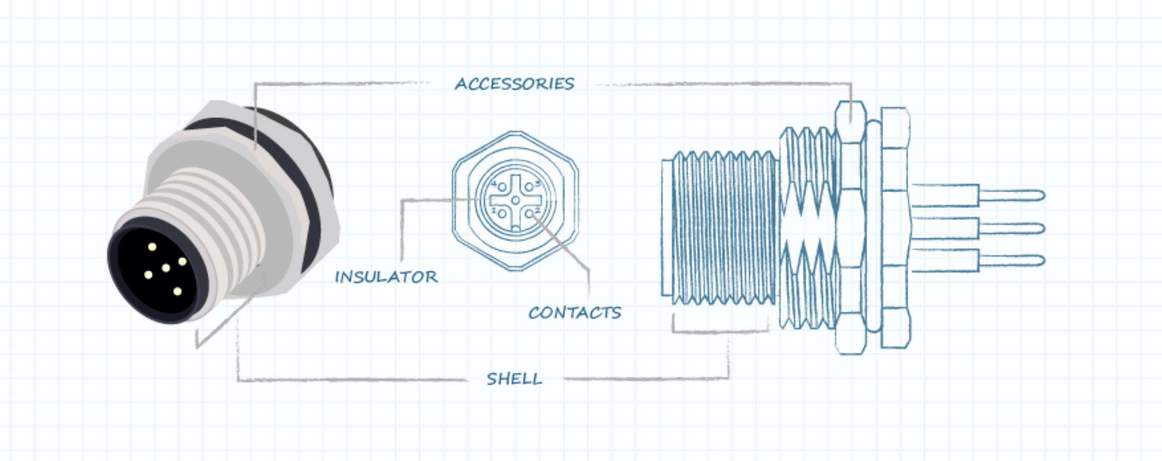 แต่ไม่ว่าจะออกแบบอย่างไรก็ตาม Circular Connectors ก็จะประกอบไปด้วยองค์ประกอบพื้นฐานดังต่อไปนี้