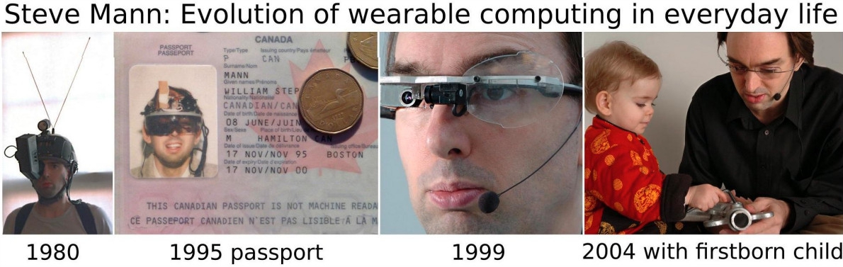 William Stephen George Mann ศาสตราจารย์ และวิศวกรชาวแคนาดา จากสถาบันเทคโนโลยีแมสซาชูเซตส์ Massachusetts Institute of Technology (MIT) ได้ประดิษฐ์ WearComp 1 ขึ้นมาจากการนำเอาอุปกรณ์หลายอย่างมายำรวมกัน มีเสาอากาศสำหรับรับสัญญาณวิดีโอแบบไร้สาย เพื่อสร้างประสบการณ์เสมือน