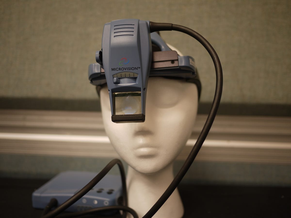 บริษัท Reflection Technology ได้เปิดตัว Private Eye จอแสดงผลแบบสวมศีรษะ ในปี ค.ศ. 1989 (พ.ศ. 2532) มันมีหน้าจอขาวดำขนาด 1.25 นิ้ว แต่ผู้ใช้จะมองเห็นภาพขนาด 15 นิ้ว โดยอยู่ห่างจากสายตา 18 นิ้ว