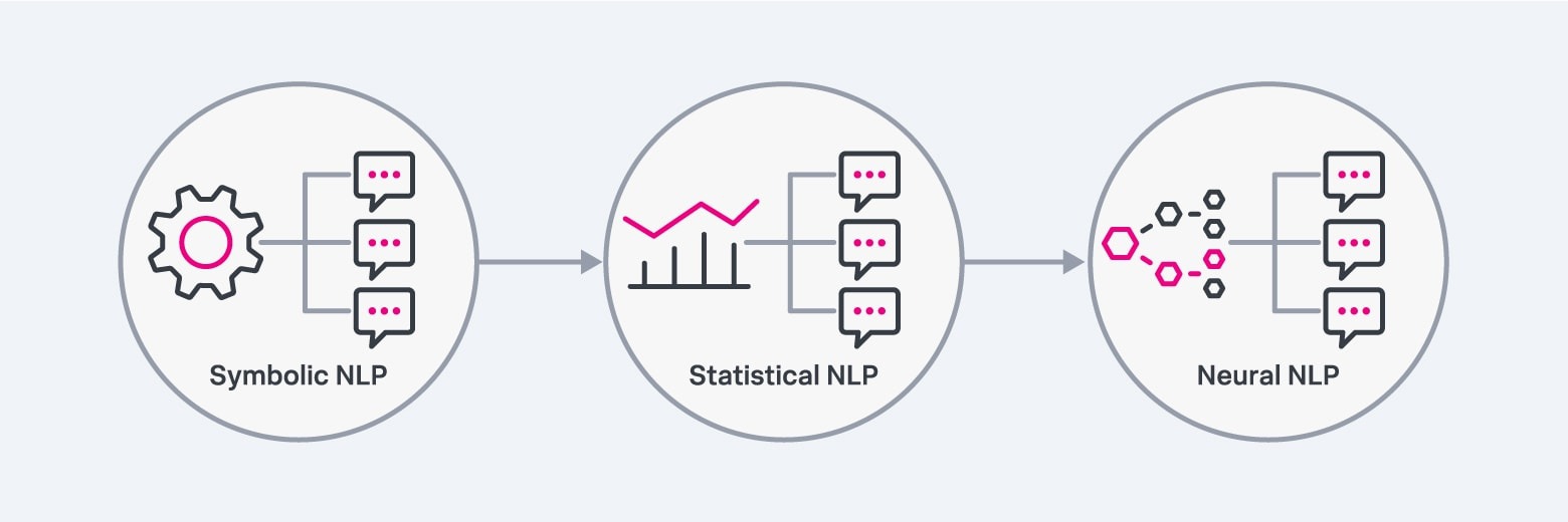 เทคโนโลยี NLP ในยุคเริ่มต้นไม่ได้มีความซับซ้อนเฉกเช่นปัจจุบันนี้ อัลกอริทึมในการตัดสินใจมีความเรียบง่าย อาศัยเพียงกฎ "If-Then" โดยเริ่มจากการตรวจสอบเงื่อนไข ถ้ามันตรงกับเงื่อนไขที่กำหนด ก็จะดำเนินการต่อตามข้อกำหนดที่เงื่อนไขระบุไว้ ดังนั้นการทำงานของ Rules-based NLP จึงมีข้อจำกัดสูง สามารถให้คำตอบได้เฉพาะคำถามที่ถูกเตรียมไว้แล้วเท่านั้น