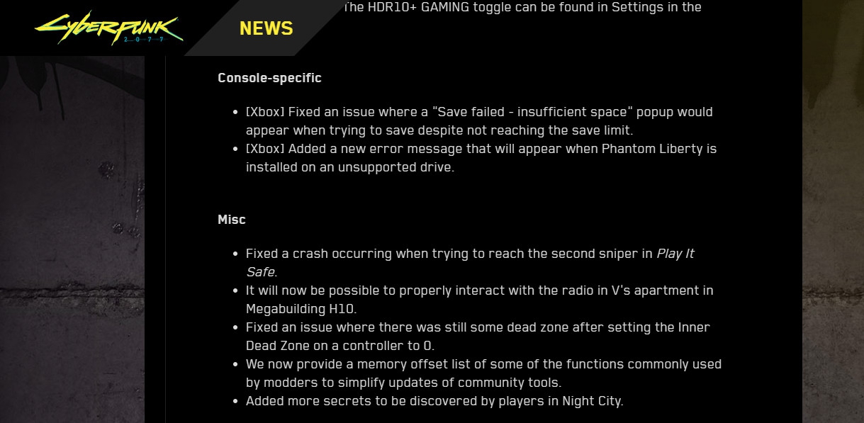 ภาพจาก : https://www.cyberpunk.net/en/news/49597/update-2-1-patch-notes