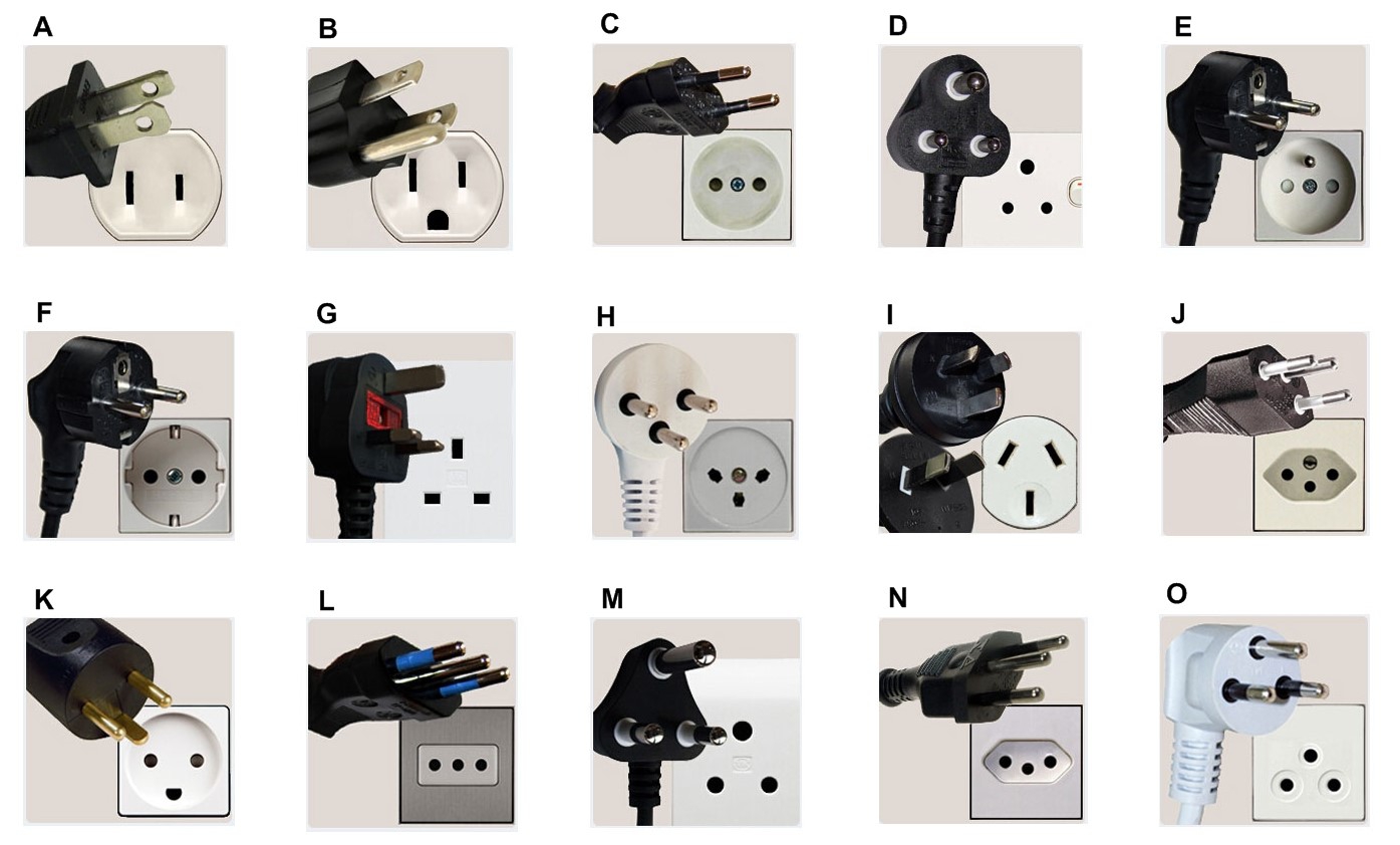 ทั้งนี้มีวิศวกรมากมายหลายพันคนทั่วโลก ที่มีส่วนร่วมในการพัฒนาระบบจ่ายไฟฟ้าตามบ้านเรือน ด้วยมาตรฐานที่มีความแตกต่างกัน ทำให้ตัวปลั๊ก และเต้ารับ มีการออกแบบมาหลายรูปแบบ แต่หลัก ๆ ก็จะมีอยู่ 15 ประเภท ดังภาพด้านล่าง