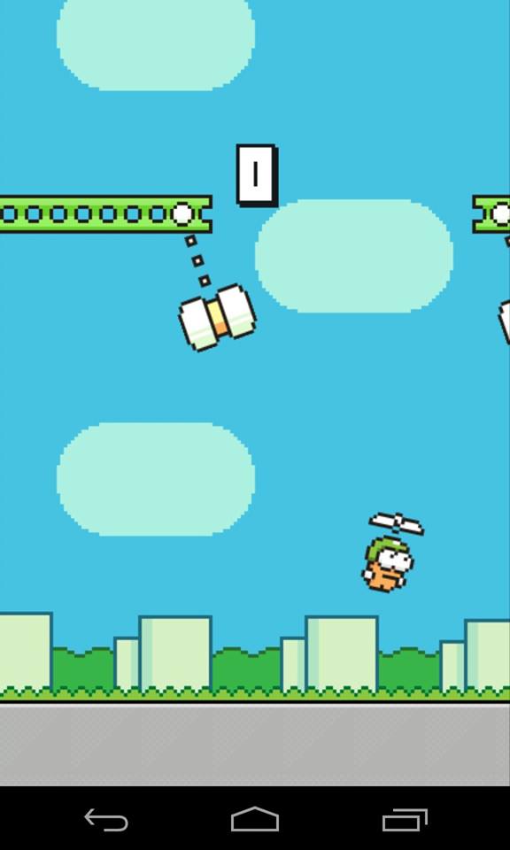 ก่อนอื่นเรามาทำความรู้จักเกมส์คร่าวๆ ก่อนนะครับ คือวิธีการเล่นของเกมส์นี้ เราจะต้องพาน้องคอปเตอร์น้อย บินขึ้นไปข้างบนเป็นชั้นๆ ไปเรื่อยๆ เพื่อเก็บคะแนนชั้นละ 1 แต้ม โดยมีสิ่งกีดขวางเป็นค้อนที่เหวี่ยงไปมา ซึ่งน้องคอปเตอร์ของเราก็จะบินเหวี่ยงไปมาเหมือนค้อนเช่นกัน วิธีการควบคุมของเกมส์คือ เวลาเรากดที่หน้าจอหนึ่งที น้องคอปเตอร์ก็จะเปลี่ยนทิศการบินสลับซ้าย-ขวา 1 ครั้งครับ