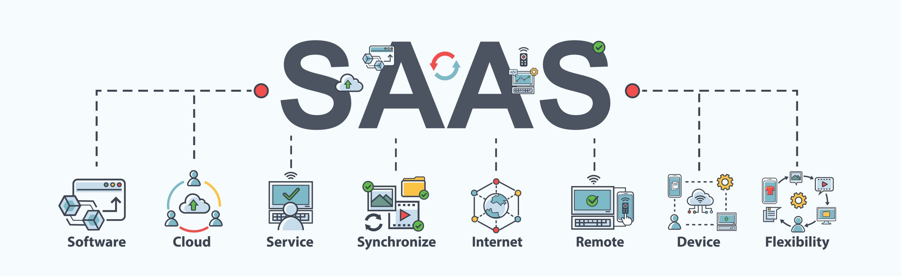 โดย SaaS ถูกสร้างขึ้นโดยใช้ประโยชน์จากโครงสร้างพื้นฐานการประมวลผลแบบคลาวด์ (Cloud Infrastructure) เข้ามาช่วยในการส่งมอบซอฟต์แวร์ผ่านอินเทอร์เน็ต โดยพื้นฐานแล้วจะมีองค์ประกอบ และขั้นตอนที่จำเป็นต่อการทำงานดังนี้