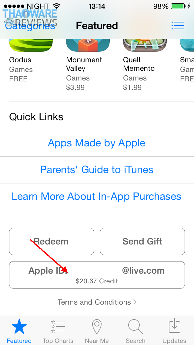 จะทำใน iPhone หรือ iTunes บนคอมพิวเตอร์ก็ได้นะครับ แต่ผมเลือกทำใน iPhone ละกัน เปิดแอปฯ iTunes, App Store, หรือ iBooks ก็ได้ครับ กดที่ Apple ID ของเรา แล้วเลือก View Apple ID