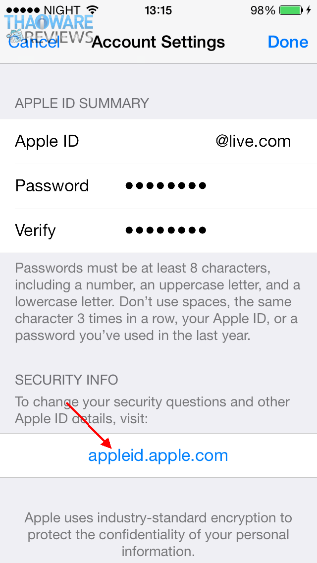 มันจะขึ้นมาให้เรากรอกรหัสผ่าน Apple ID หลังจากเข้าระบบจะมาอยู่ที่หน้า APPLE ID SUMMARY ให้เราเลือก Security Info ไปที่ appleid.apple.com
