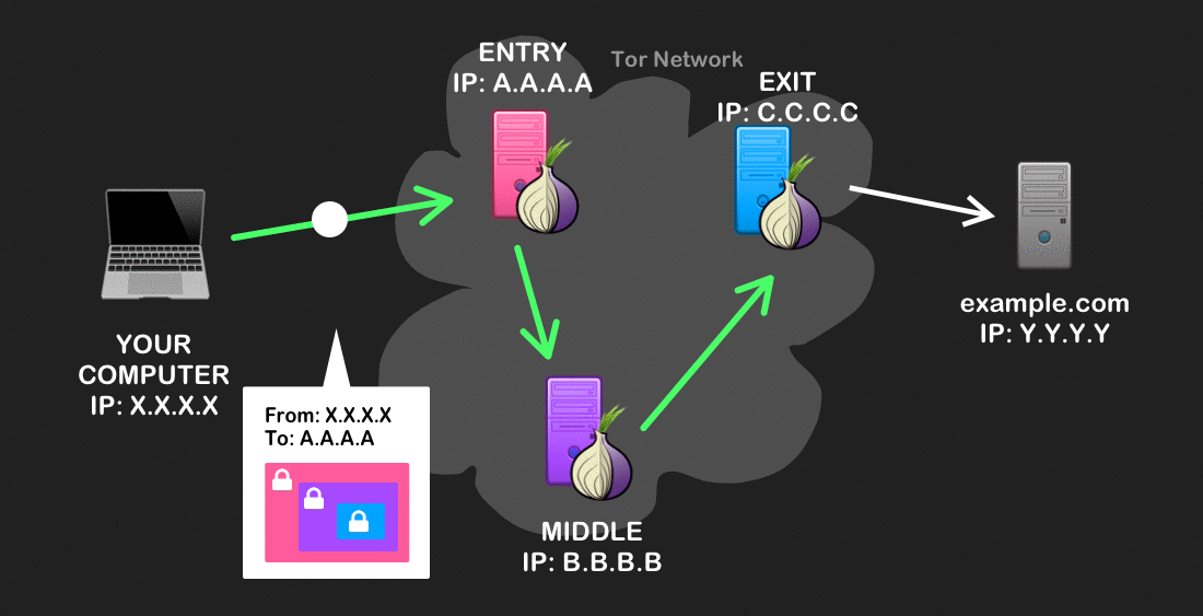 Tor ใช้เทคนิคการส่งข้อมูลแบบชั้นหัวหอม (Onion-Style Routing) ในการส่งผ่านข้อมูล โดยเมื่อเราใช้ Tor Browser ในการสื่อสารบนอินเทอร์เน็ต คอมพิวเตอร์ของผู้ใช้งานจะไม่ได้เชื่อมต่อไปยังเว็บไซต์โดยตรง แต่ Tor จะดักจับข้อมูลคำร้องเพื่อส่งไปยังคอมพิวเตอร์ของผู้ใช้ Tor รายอื่น ๆ แบบสุ่ม ซึ่งทำหน้าที่เป็น Node โดยปัจจุบันมีอยู่ประมาณ 8,000 Node ก่อนที่คำร้องของเราจะเดินทางไปถึงปลายทาง หรือเว็บไซต์เป้าหมายการทำงานรูปแบบนี้ ก็เพื่อช่วยซ่อนเส้นทางการเดินทางของข้อมูล ทำให้ยากต่อการถูกตรวจสอบว่าเป็นคำร้องที่มีที่มาที่ไปอย่างไร ช่วยปกป้องความเป็นส่วนตัว และเพิ่มความปลอดภัยให้กับผู้ใช้งาน