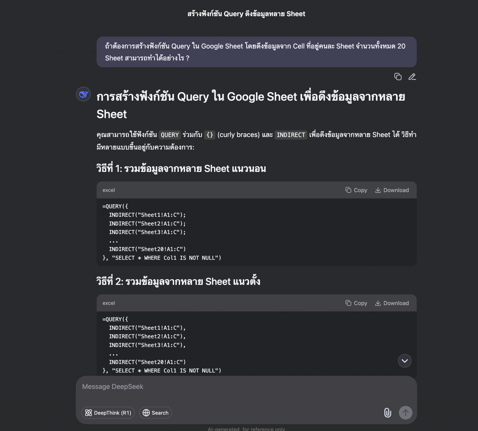 มาลองดูตัวอย่างการทำงานกัน สมมติให้เราป้อนคำถามเดียวกันไปยัง AI ทั้งสองประเภทว่า