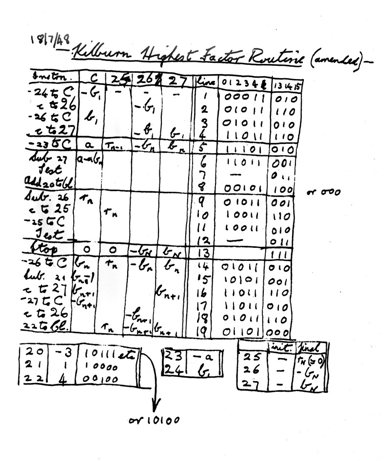 หนึ่งในตัวอย่างแรกสุดของ Source Code ในรูปแบบที่เรารู้จักในปัจจุบัน ถูกเขียนโดย Tom Kilburn ซึ่งเป็นหนึ่งในผู้บุกเบิกด้านวิทยาการคอมพิวเตอร์ Kilburn ได้สร้างซอฟต์แวร์ดิจิทัลที่ประสบความสำเร็จเป็นครั้งแรก ซึ่งถูกจัดเก็บในหน่วยความจำของคอมพิวเตอร์ ขึ้นมาในปี ค.ศ. 1948 (พ.ศ. 2491) โดยซอฟต์แวร์ดังกล่าวถูกออกแบบมาเพื่อแก้สมการทางคณิตศาสตร์