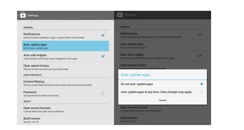 การอัปเดตแอปฯ อัตโนมัติเป็นเรื่องที่ดี เพราะนอกจากที่จะทำให้ผู้ใช้งานได้มีแอปพลิเคชันเวอร์ชันใหม่ๆ ติดเครื่องอยู่ตลอดเวลาแล้ว การอัปเดตอัตโนมัติยังทำให้ผู้ใช้งานสามารถทำการอัปเดตแอปพลิเคชันบนสมาร์ทโฟนได้เลยโดยที่ไม่ต้องเข้าไปกดอัปเดตบน Play Store เองให้ยุ่งยาก ซึ่งถ้าการอัปเดตอัตโนมัติของเรานั้นทำบน Wi-Fi ก็ไม่น่าจะมีปัญหาอะไร แต่ถ้าหากมันอัปเดตจากอินเตอร์เน็ตผ่านทางผู้ให้บริการเครือข่ายที่เราใช้อยู่บนสมาร์ทโฟนของเราหละ คงจะเป็นเรื่องที่น่าเสียดายและเปลืองเน็ตน่าดู ดังนั้นวิธีการปิดอัปเดตอัตโนมัติจึงจะเป็นการเซฟที่สุด ซึ่งเพื่อนๆ สามารถทำได้โดย เข้าไปที่ Play Store จากนั้นก็เลือกไปที่การตั้งค่า หรือ Settings จากนั้น แตะที่ Auto-update apps แล้วเลือก Do not auto-update apps เพียงเท่านี้แอนดรอยด์ของคุณก็จะไม่อัปเดตอัตโนมัติแล้ว