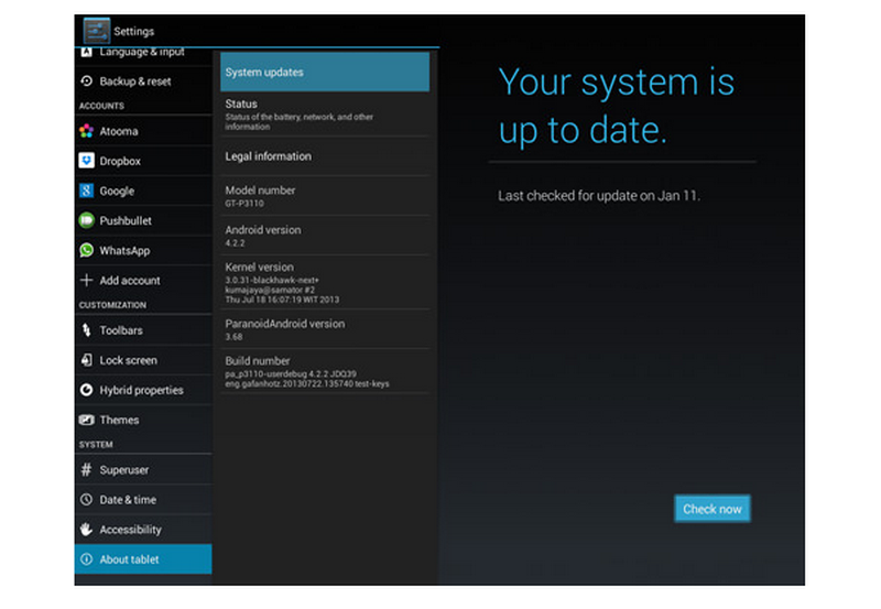 การตรวจสอบอัปเดตนี้เป็นวิธีการพื้นฐานสำหรับมือใหม่อย่างแน่แท้เลยทีเดียว เพราะว่าในครั้งแรกที่เราซื้อสมาร์ทโฟนแอนดรอยด์มาใหม่ สิ่งที่ควรทำหลังจากการตรวจสอบเครื่องและสมัครบัญชีอีเมล Google แล้ว เราควรเข้าไปทำการตรวจสอบอัปเดตเวอร์ชันใหม่ของแอนดรอยด์ที่เราใช้อยู่ เพราะในบางครั้งสมาร์ทโฟนของเราอาจสามารถทำการอัพเกรดเป็นเวอร์ชันใหม่ได้ เพียงแต่ว่าตอนที่เครื่องถูกผลิตออกมาจากโรงงานนั้นการปรับปรุงรุ่นอาจจะตามมาทีหลังนั่นเอง ส่วนวิธีการเช็คอัปเดตนั้นมือใหม่สามารถทำได้โดยการ เข้าไปที่ Settings > About phone/tablet จากนั้น แตะที่ปุ่ม System updates จากนั้นก็แตะที่ Check now to look for system updates ได้ทันทีเลย