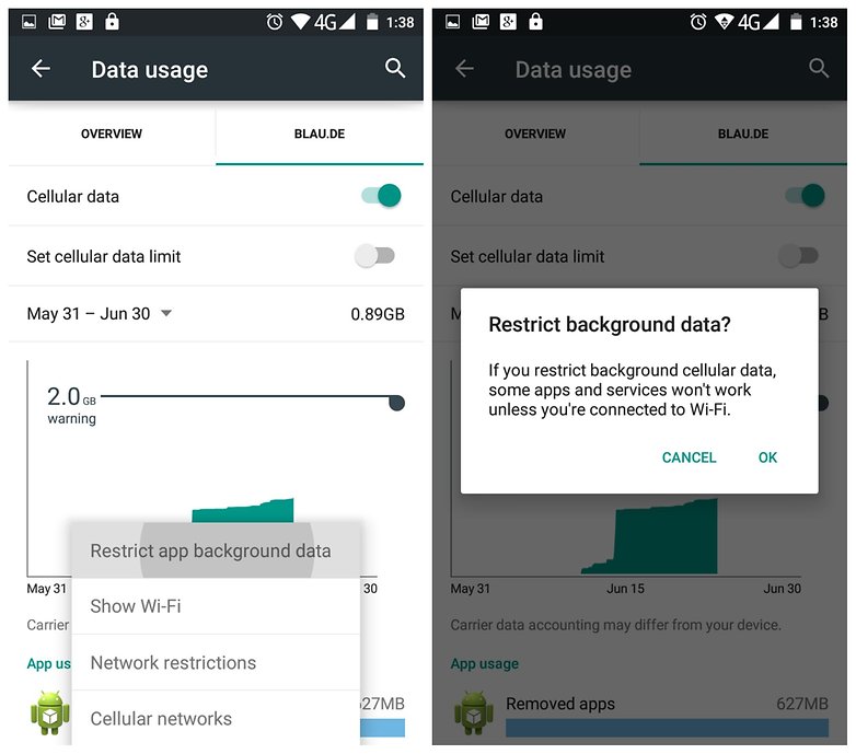 เป็นอีกหนึ่งวิธีง่ายๆ ในงานประหยัดดาต้า นั่นก็คือ การเปิดใช้งาน Restrict background data โดยปกติแล้วแม้เราจะไม่ได้ใช้งานโทรศัพท์อยู่ แต่เบื้องหลังก็จะยังมีการใช้งานอินเตอร์เน็ตในการอัพเดตข้อมูลอยู่โดยที่เราไม่รู้ตัว อย่างเช่นการ เช็คอีเมลล์, การอัพเดต Feeds ต่างๆ, สภาพอากาศ และอื่นๆ อีกมากมาย ซึ่งส่วนมากไม่ได้จำเป็นต่อชีวิตของเราเท่าไหร่
