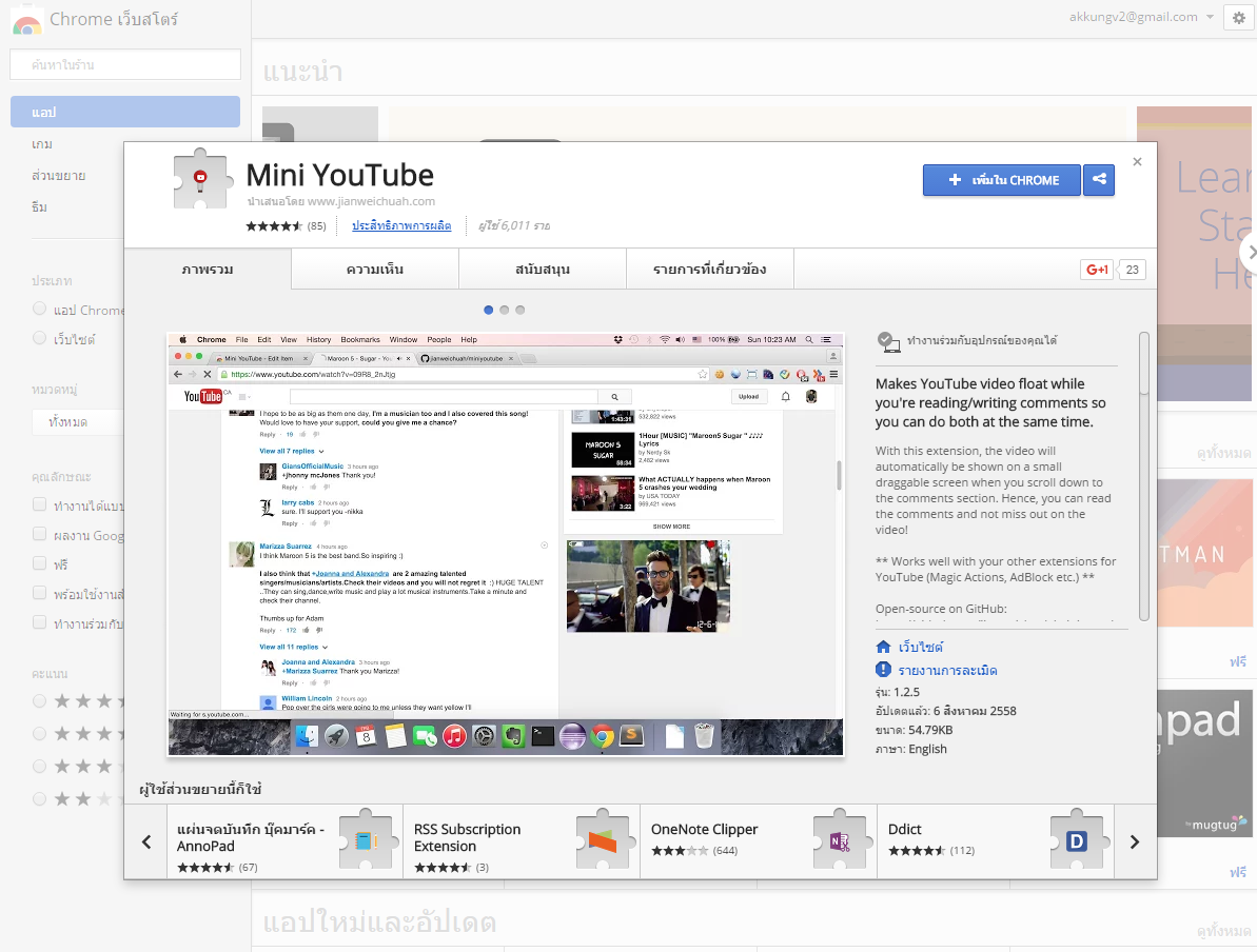 เปิด Chrome ขึ้นมาไปที่ URL : https://chrome.google.com/webstore/detail/mini-youtube/acphfpihfjpgnihkgelafhmjeoodbehp