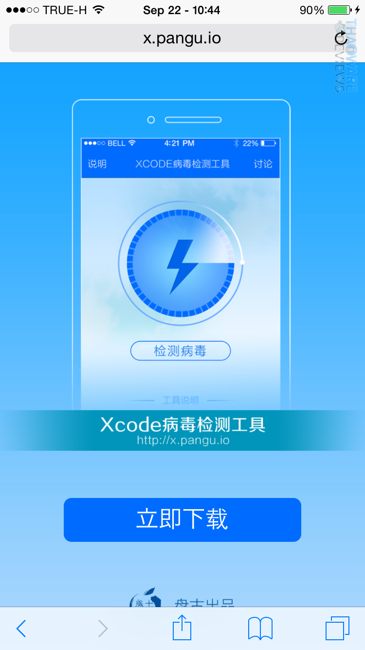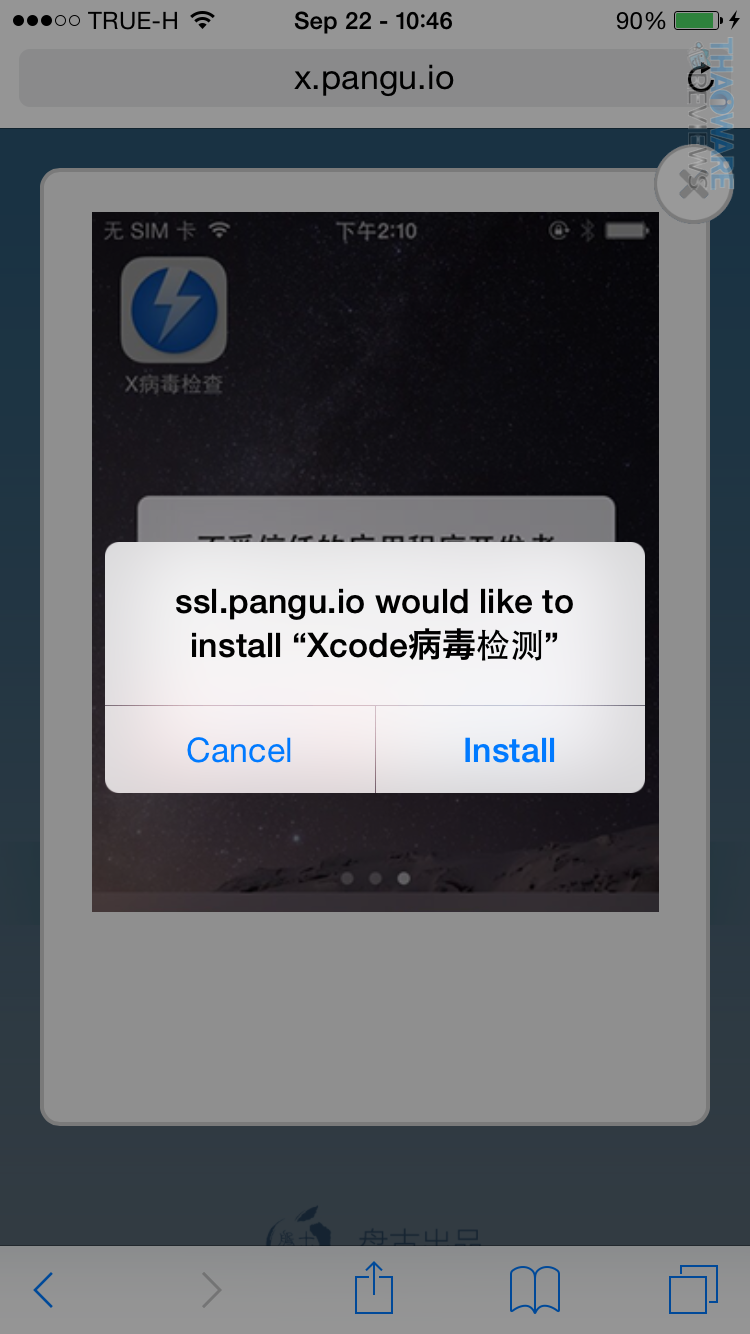 moonlightkzXcodeGhost เป็นวายร้ายมาแรงที่สามารถโจมตีเข้า App Store ได้เป็นตัวแรก มีแอปฯหลายตัวที่ติดมัลแวร์ตัวนี้อยู่ สำหรับที่กังวลว่าเครื่องที่ใช้งานอยู่ติดมัลแวร์ตัวนี้หรือไม่ สามารถใช้เครื่องมือที่พัฒนาโดย Pangu ทีมเจลเบรคชื่อดังในการตรวจสอบได้