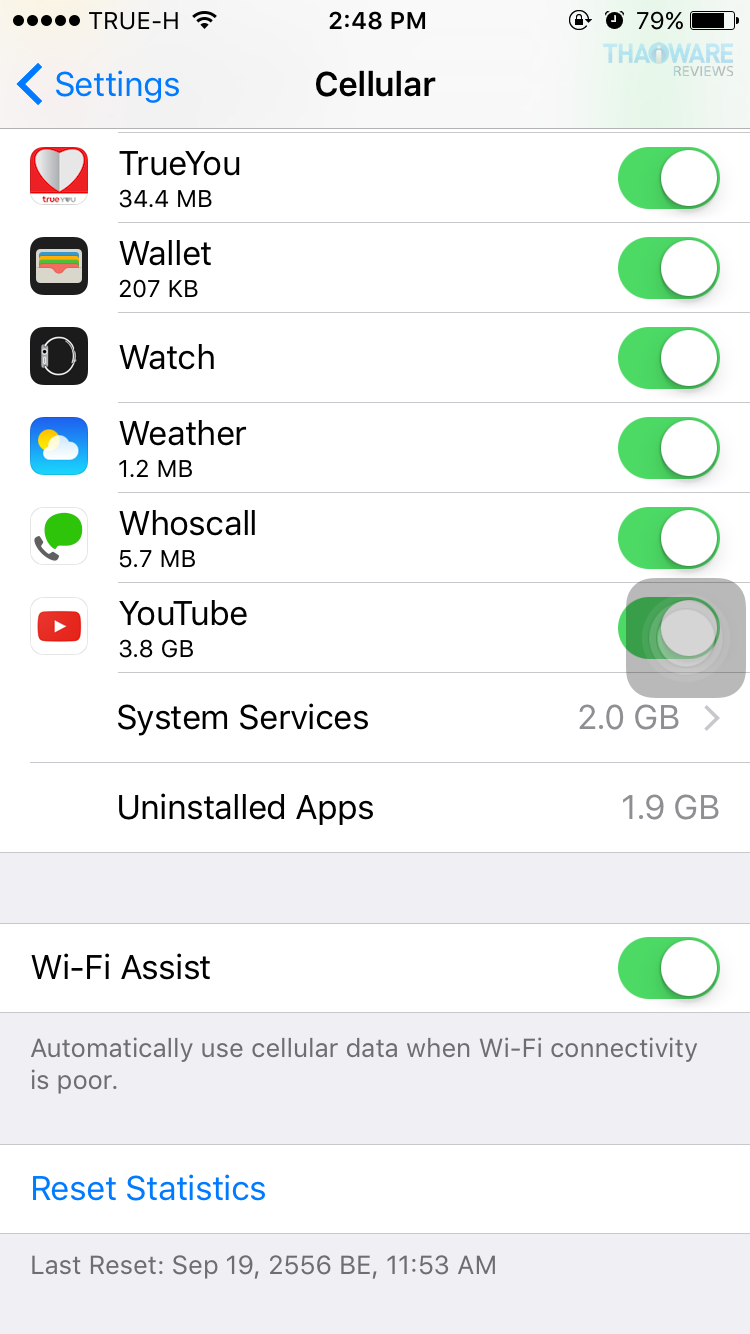 ลูกเล่น Wi-Fi Assist เป็นของเล่นใหม่ที่มาใน iOS 9 ประโญชน์ คือ ช่วยชดเชยสัญญาณอินเตอร์เน็ตด้วย 3G/4G เวลาที่ Wi-Fi ไม่เสถียร เพื่อช่วยให้การเซิฟเน็ตเป็นไปอย่างต่อเนื่อง แต่ก็แลกมาด้วยความเสี่ยง หาก Wi-Fi ล่มโดยที่เราไม่รู้ตัว เราจะต้องเสียดาต้ามหาศาลในการเซิฟโดยไม่ทันรู้ตัวได้