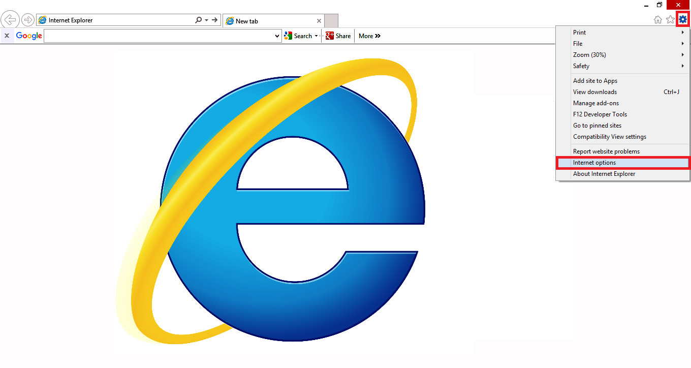 สำหรับเว็บเบราว์เซอร์ Internet Explorer : ให้กดที่สัญลักษณ์ตั้งค่า ที่เป็นรูปเฟือง ด้านขวาบนของหน้าต่าง แล้วเลือกที่ เมนู Internet Options