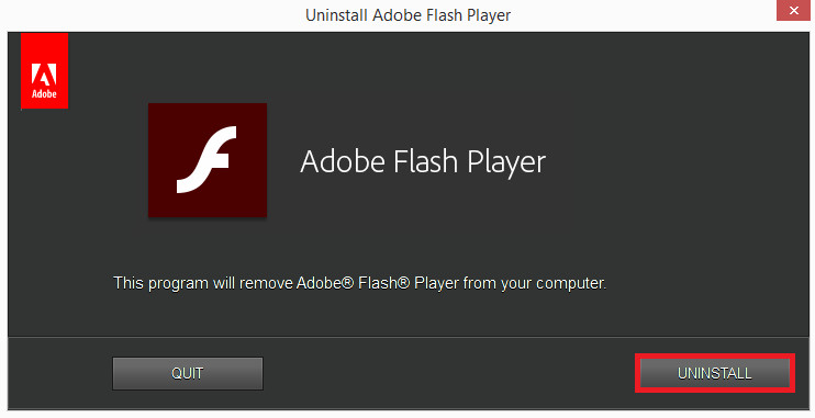 ในส่วนของขั้นตอนนี้ คือการลบโปรแกรมของ Adobe Flash Player ที่ได้ถูกติดตั้งอยู่ในเครื่องคอมพิวเตอร์ของเราออกไปอย่างสิ้นซาก (เหมาะสำหรับคนที่มั่นใจว่าจะไม่ใช้ โปรแกรมใดๆ ที่มีผลเกี่ยวเนื่องกับ Flash เพราะเมื่อลบการติดตั้งไปแล้วอาจมีผลข้างเคียงต่อการแสดงผลในบางเว็บไซต์ได้)
