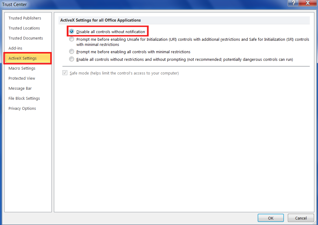 วิธีปิดการใช้งานของ Flash ในโปรแกรม Microsoft Office ด้วยการปิดฟังก์ชั่นการใช้งานของ ActiveX