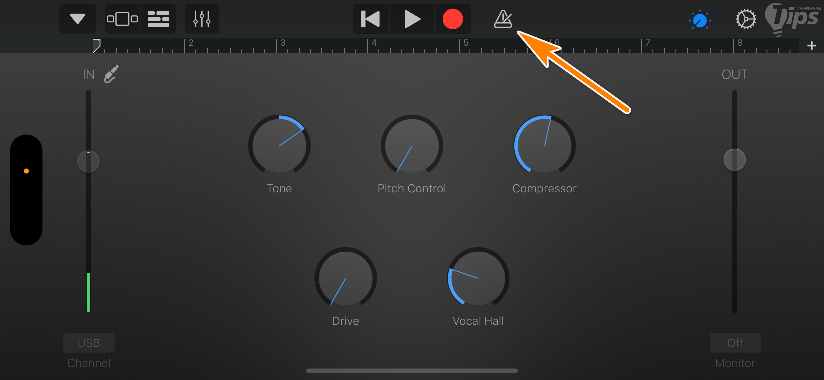 1. แตะที่ "ไอคอน เมโทรนอม" จาก "สีฟ้า" ให้เป็น "สีขาว"