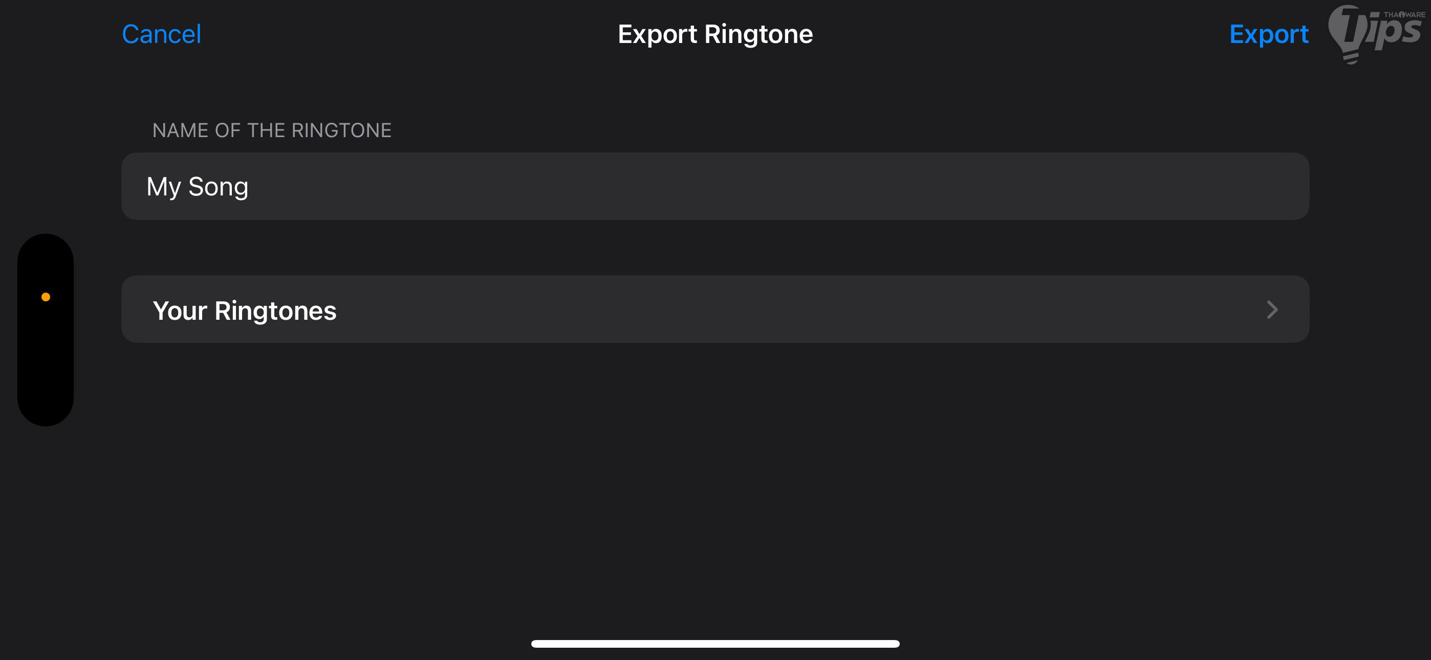 1. ทำการตั้งชื่อเสียงริงโทนตามที่ต้องการ จากนั้นก็แตะที่ "เมนู Export"