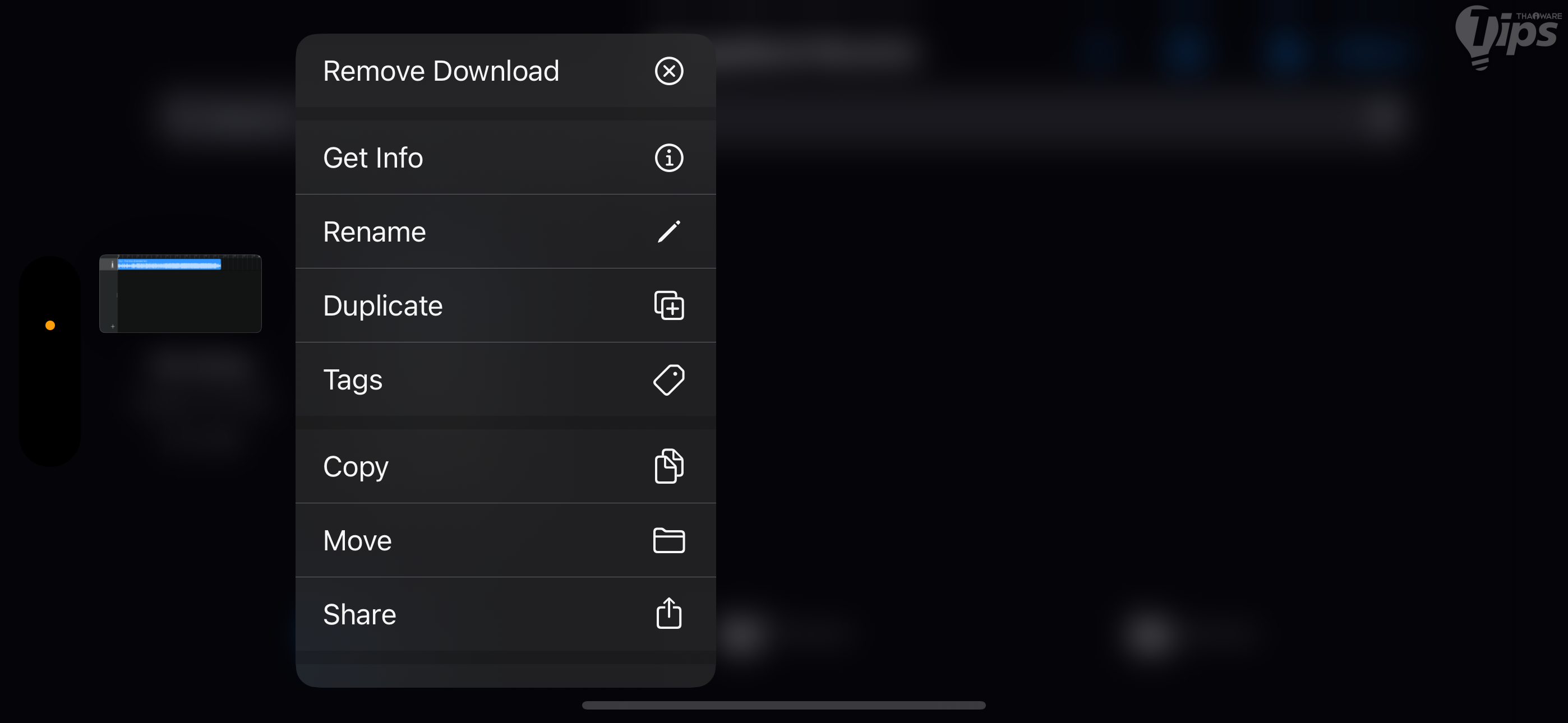 1. แตะไฟล์ค้างเอาไว้เพื่อเรียกเมนูลัดขึ้นมา แตะเลือก "เมนู Share"