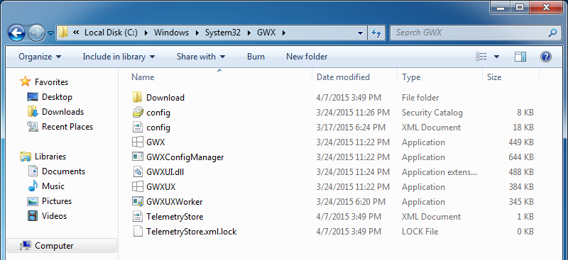เปิด File Explorer ขึ้นมาไปที่ C:\Windows\System32 มองหาโฟลเดอร์ที่มีชื่อ GWX แล้วลบไฟล์ในโฟลเดอร์นี้ทิ้งให้หมด