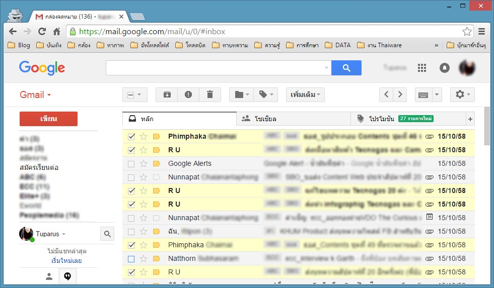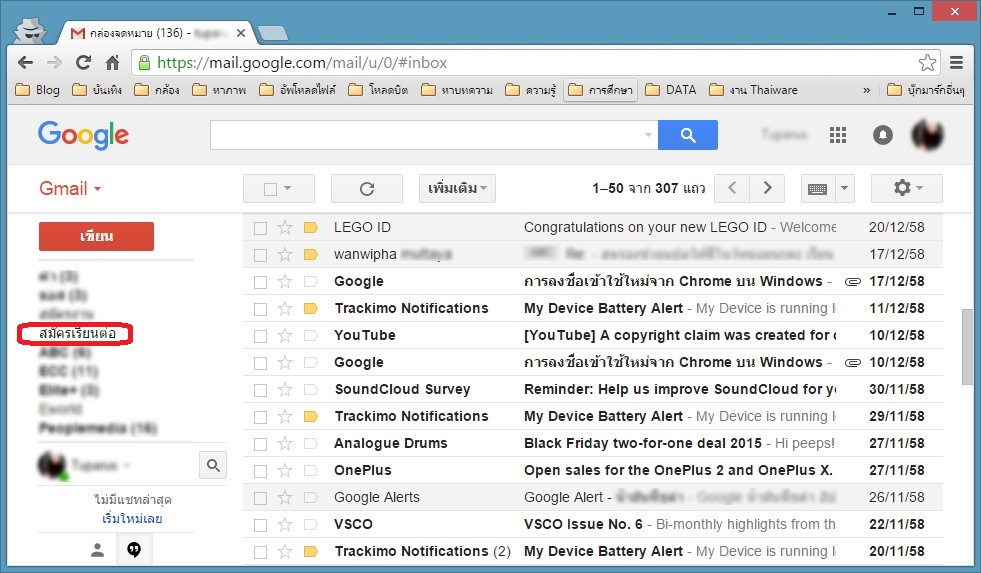 ทีนี้เมื่อเราต้องการเรียกดูอีเมลทั้งหมดที่เกี่ยวกับเรื่องสมัครเรียนต่อ ก็ให้คลิกที่ป้ายชื่อ สมัครเรียนต่อ บนแถบเมนูทางฝั่งซ้ายของหน้าเว็บ Gmail เพียงเท่านี้รายการทั้งหมดของอีเมลที่เกี่ยวกับการสมัครเรียนต่อ ก็จะถูกนำขึ้นมาแสดงทันที (ทั้งอีเมลที่ส่งมาหาเรา และอีเมลที่ถูกส่งออกไป) ไม่ต้องเสียเวลา Search หา ทำให้เราสามารถไล่เปิดอ่าน หรือไล่ลบอีเมลเก่าๆ ที่เกี่ยวกับการสมัครเรียนต่อได้อย่างง่ายดายเลยครับ