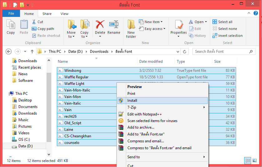 Thaiwareหลายๆ คนคงคุ้นเคยกับการใช้ฟอนต์ (Font) ทำงานเอกสารต่างๆ ไม่ว่าจะเป็น Word , Excel หรือโปรแกรมออกแบบต่างๆ อย่าง Photoshop , Illustrator ภายในเครื่องคอมพิวเตอร์ก็จะมีฟอนท์ (Font) เริ่มต้นมากับเครื่องอยู่แล้ว แต่สำหรับคนที่ต้องการเพิ่มฟอนต์เพื่อใช้กับงานโดยเฉพาะหรือทำให้งานน่าสนใจขึ้น มาดูวิธีการเพิ่มฟอนต์ / ลบฟอนต์ ไปพร้อมๆ กันเลย