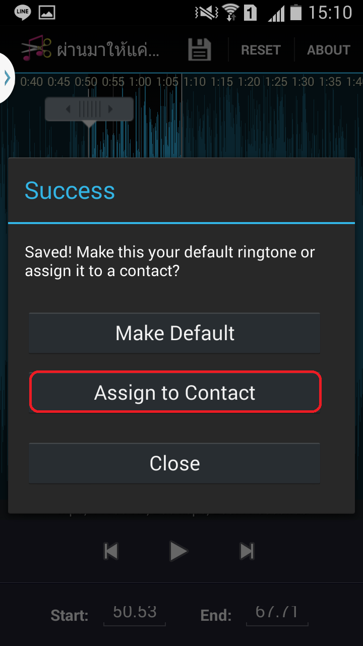 แถมอีกนิด.. ถ้าใน หน้าต่าง Success เราเลือกเป็น Assign to Contact จะสามารถกำหนดการใช้เสียงเรียกเข้าของริงโทน ในรายชื่อเบอร์ติดต่อของแต่ละคนที่อยู่ในเครื่องโทรศัพท์มือถือของเราได้อีกด้วย ถือเป็นแอปฯ สำหรับการทำริงโทนที่ใช้งานได้ง่ายและสะดวกมากๆ เลยทีเดียว