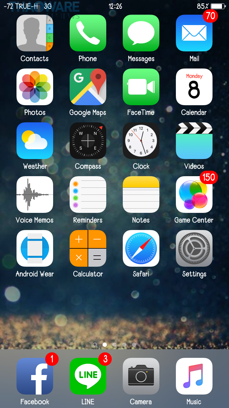 หากต้องการให้โทรศัพท์แสดงค่าเป็นตัวเลขแทนจุดตลอดเวลา ก็สามารถทำได้นะครับ ในหน้าจอนี้ ให้เรากด Power ค้างไว้จนหน้าจอขึ้น Slide to unlock แล้วกด Home ค้างไว้ประมาณ 5-10 วิ เราจะกลับมาสู่หน้า Homescreen โดยที่สัญญาณบนจอจะแสดงเป็นตัวเลข