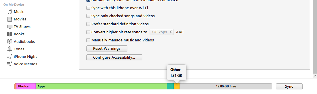 ทั้งนี้ เมื่อเราเชื่อมต่อ iPhone กับ iTunes ข้อมูลในเครื่องจะถูกจัดหมวดหมู่ตามรายการด้านล่างนี้