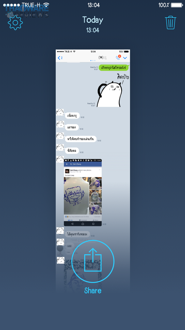 แอปฯ ตัวนี้เหมาะสำหรับคนอยากจะจับภาพในแชทอย่าง LINE, Facebook Messenger ครับ สามารถแคปได้ยาวๆ เลย ทีเด็ด คือ อัตโนมัติใช้งานง่าย แต่ข้อเสีย คือ เราไม่สามารถลบภาพที่ไม่ต้องการได้ และไม่มีลูกเล่นอย่างการลบชื่อหรือไฮไลต์ข้อความ