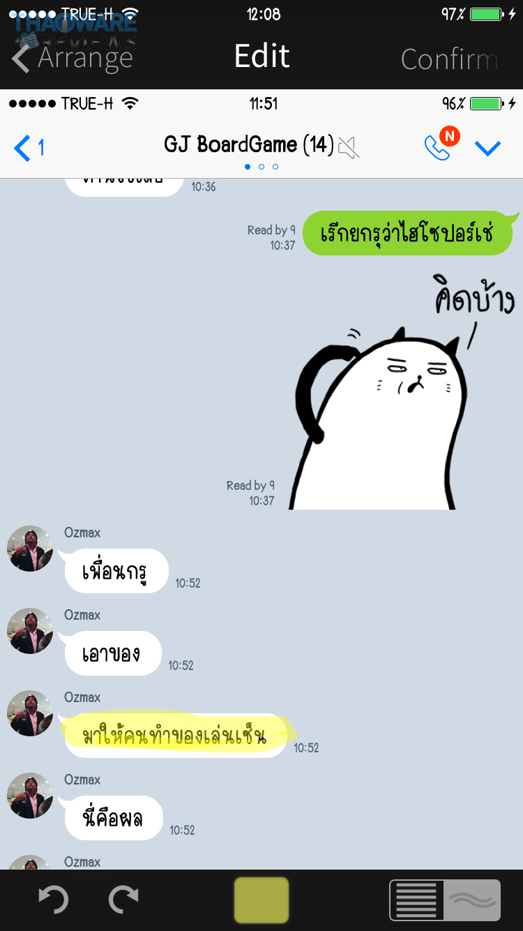 เราจะได้ภาพที่ต่อกันยาวๆ มาละ ทีนี้อยากจไฮไลต์ข้อความตรงไหนเป็นพิเศษก็บรรเลงให้เต็มที่ด้วยการใช้เครื่องมือที่อยู่ด้านล่าง หากเรียบร้อยแล้วก็กด Confirm ที่ด้านขวาบน ตรวจเช็คความเรียบร้อยครั้งสุดท้าย จากนั้นกด Done เพื่อบันทึกภาพ
