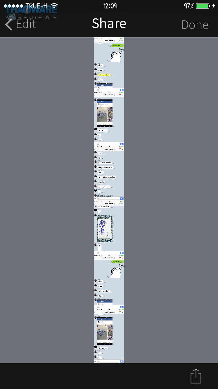 แอปฯ นี้ไม่มีตัวเลือกอะไรทั้งนั้นครับ เวลาใช้งานเราก็กดแคปเจอร์ปกติเลย ด้วยการกดปุ่ม Power+Home ในแอปฯ ที่เราต้องการอย่างเช่น LINE หลังจากแคปจนพอใจแล้ว กดเปิดแอปฯ Tailor ขึ้นมา มันจะตรวจสอบรูปจาก Clipboard อัตโนมัติ แล้วต่อภาพให้เราทันที พูดง่ายๆ ว่าแคปเจอร์เสร็จพอเปิดแอปฯ ทุกอย่างก็เรียบร้อยแล้ว ใช้งานง่ายมาก