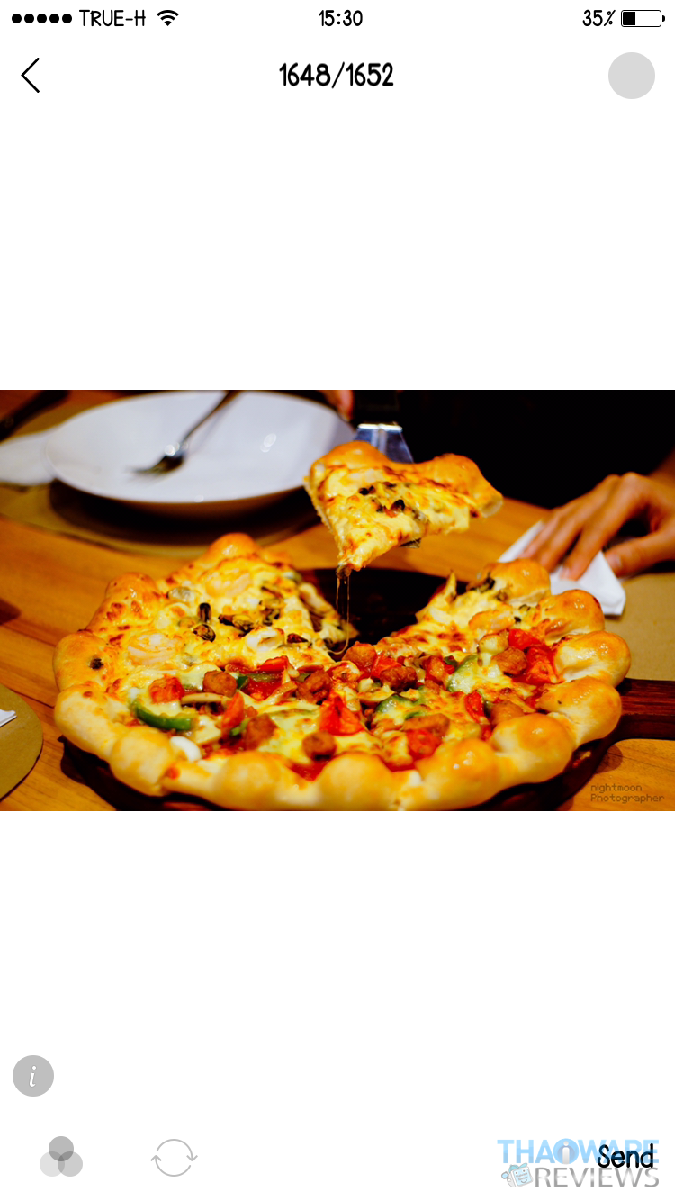 ตอนที่เรากดส่งรูป ก็เริ่มต้นเหมือนเดิม แตะไปที่ + แล้ว Choose Photo เราจะมายังหน้าแบบรูปซ้ายมือ ถ้าเราแตะไปที่รูปเลย เราจะมายังรูปด้านขวา ถ้าเรากด Send จากหน้านี้ รูปที่ส่งจะโดนย่อ ครับ