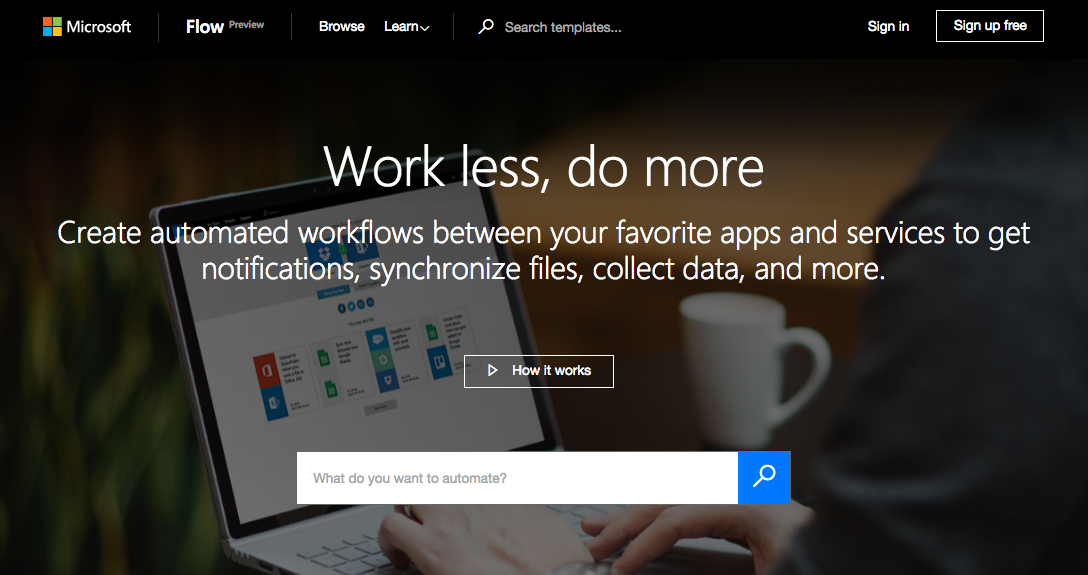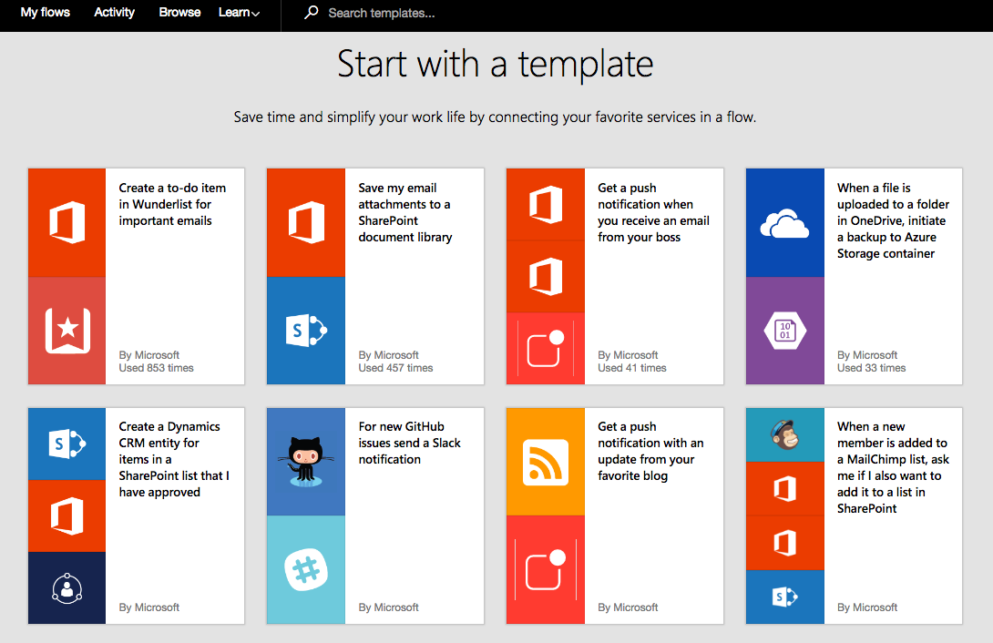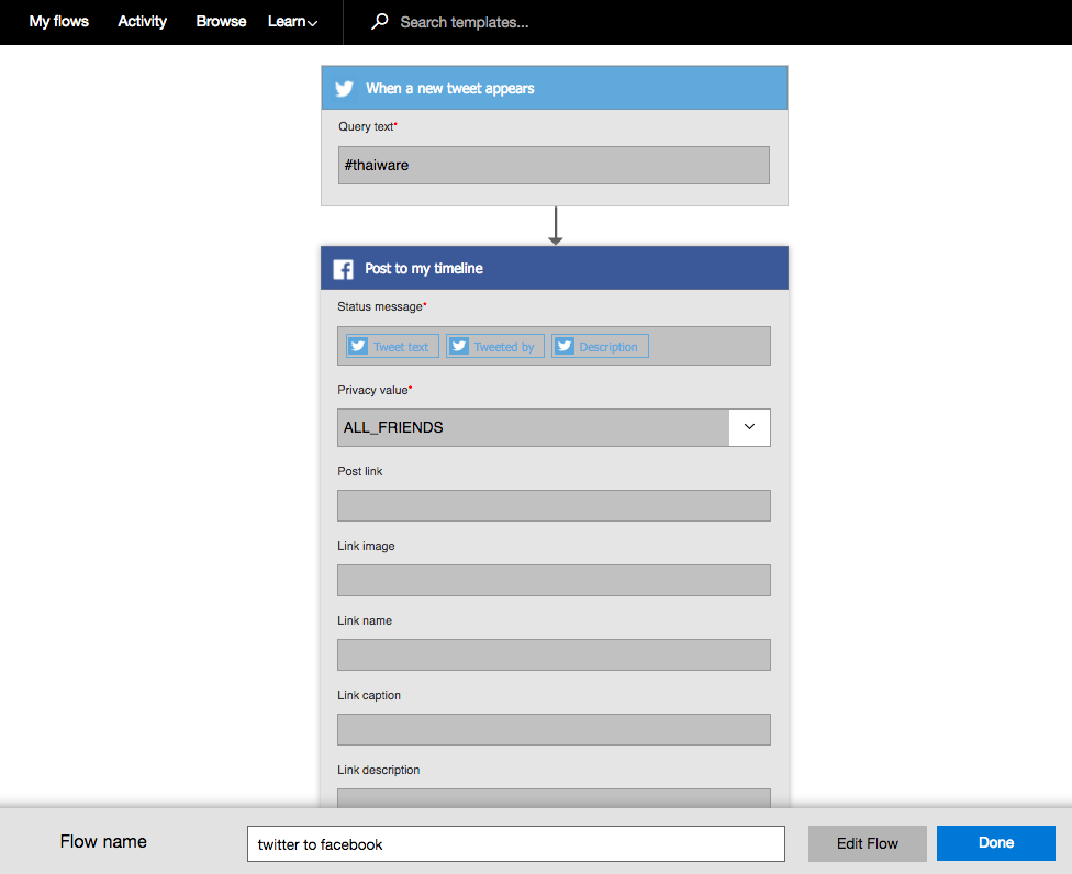 อ่านข้อมูล Microsoft Flow เพิ่มเติม https://flow.microsoft.com/en-us/blog/welcome-to-microsoft-flow/ และ https://flow.microsoft.com/en-us/documentation/getting-started/