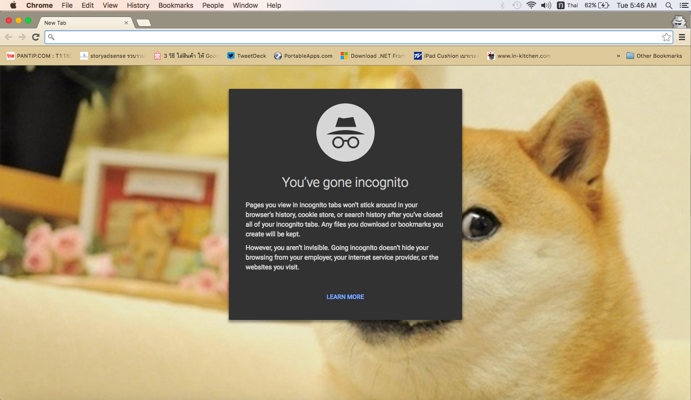 บน Browser ใช้ Incognito Mode ผู้เขียนทดสอบบน Google Chrome บน Mac เข้าที่ไป File > New Incognito Window จะเจอหน้าต่างใหม่แบบนี้ หรือหากใช้บน PC ก็แค่กด Ctrl+Shif+N