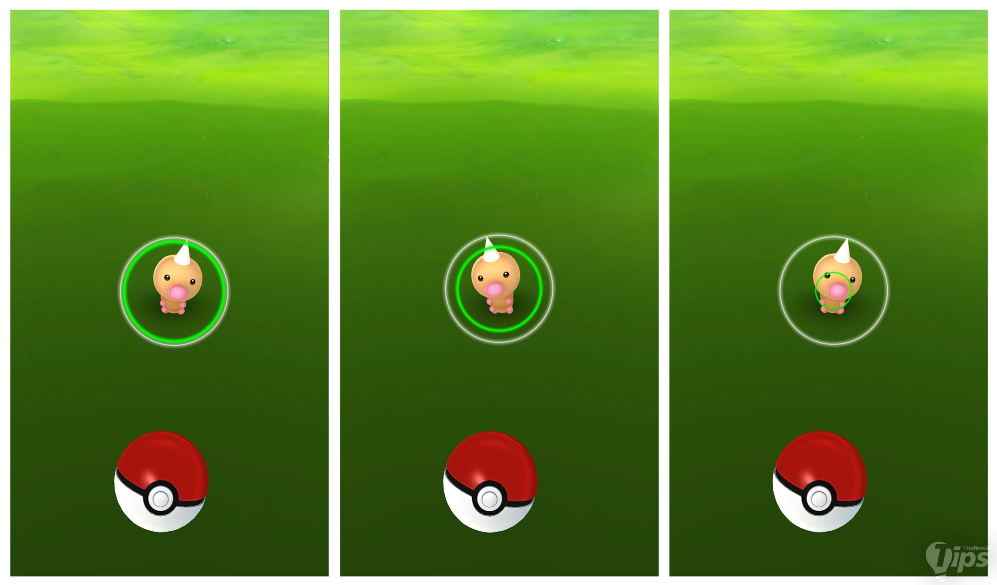 นอกจากจังหวะของโปเกม่อนแล้ว เพื่อนๆ จะสังเกตเห็นวงกลมสีเขียว รอบๆ ตัวโปเกม่อน ซึ่งเป็นคะแนนโบนัสของผู้เล่น เมื่อปาบอลได้แม่นยำเข้าเป้าเป๊ะๆ นั่นเอง โดยวงกลมจะแบ่งออกเป็น 3 ขนาด (Nice, Great และ Excellent) ยิ่งวงเล็ก ก็จะยิ่งได้รับคะแนน XP โบนัสสูงขึ้น