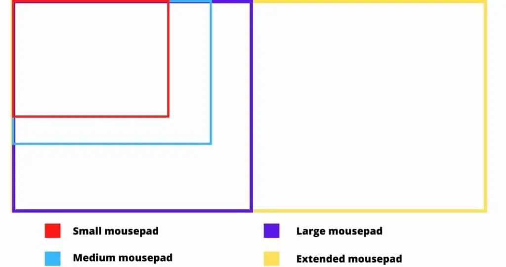 แผ่นรองเมาส์ส่วนใหญ่จะผลิตออกมา 4 ขนาด คือ เล็ก (Small), กลาง (Medium), ใหญ่ (Large) และใหญ่พิเศษ (Extended)