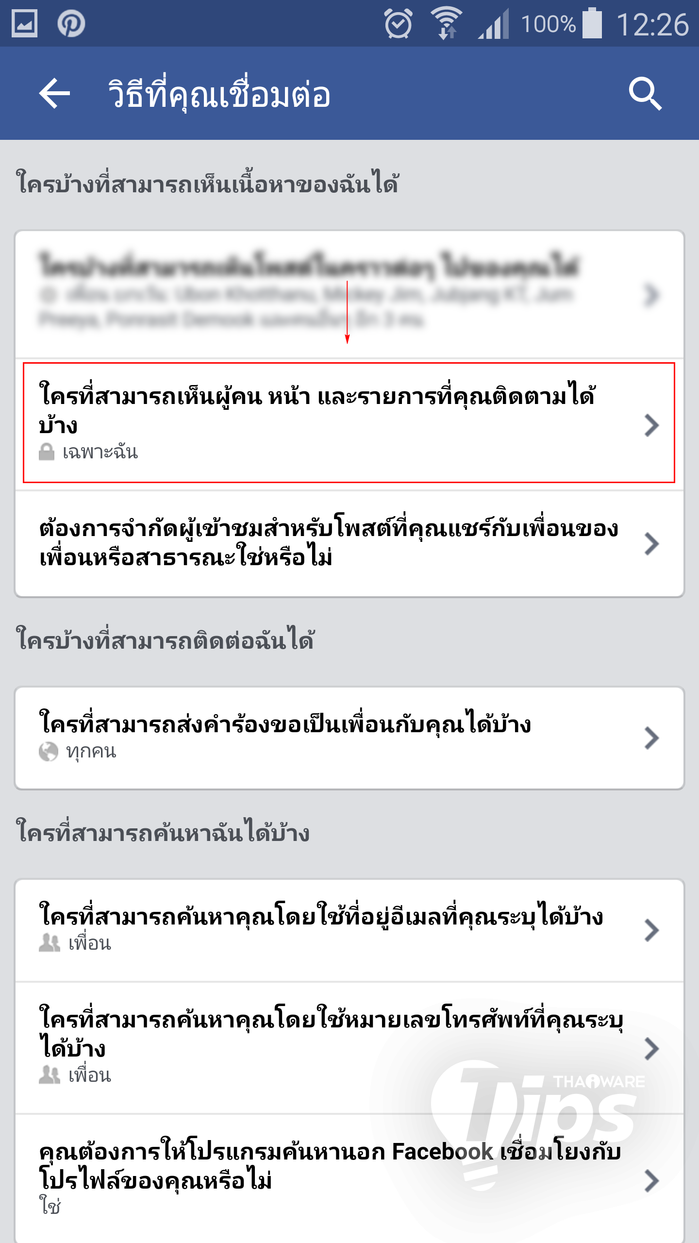 เพิ่มเติม : นอกจากจะตั้งค่า "กำหนดผู้ที่สามารถเห็นรายการติดตามของคุณ" ได้แล้ว ยังสามารถกำหนดบุคคลที่สามารถเห็นรายชื่อเพื่อนบน Facebook ได้อีกด้วย