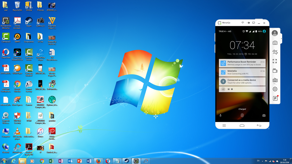 สำหรับ Wondershare MirrorGo เป็นการนำเอาหน้าจอมือถือ Android ไปแสดงบนคอมพิวเตอร์ ไม่พลาดทุกการแจ้งเตือนทั้ง Message E-Mail Reminders Alerts แจ้งเตือนต่างๆ