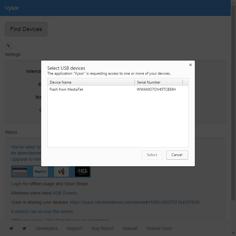 บนมือถือ Android ติดตั้ง Vysor for Android เปิดการตั้งค่า USB debugging ให้เป็น enable