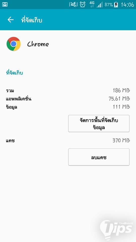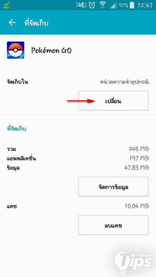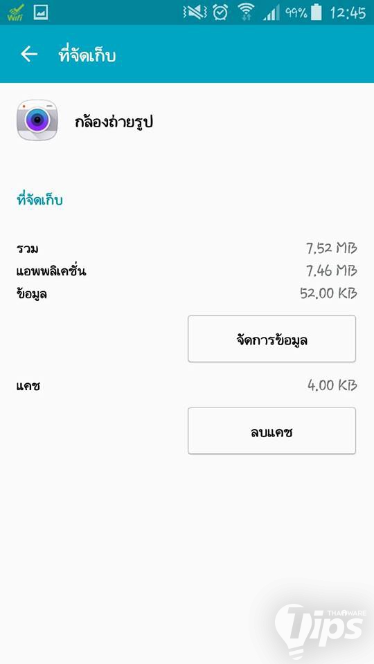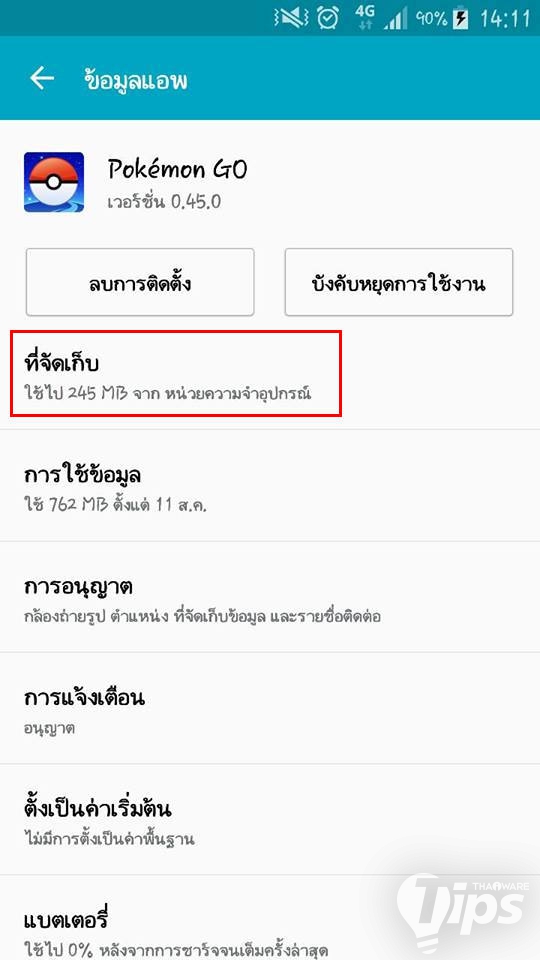 3. ในส่วนของที่จัดเก็บตอนนี้จะระบุว่า ที่จับเก็บ ใช้ไป 245 MB จากหน่วยความจำอุปกรณ์ ซึ่งแปลว่าข้อมูลของแอปฯ นี้ ถูกบันทึกอยู่ในเครื่อง กดเข้าไปใน ที่จัดเก็บ ได้เลย